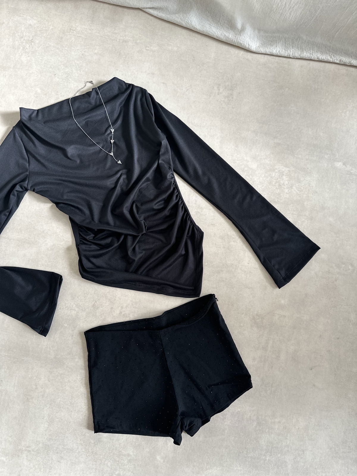 Short elastizado con hot fix al tono, posee cierre invisible en el lateral
