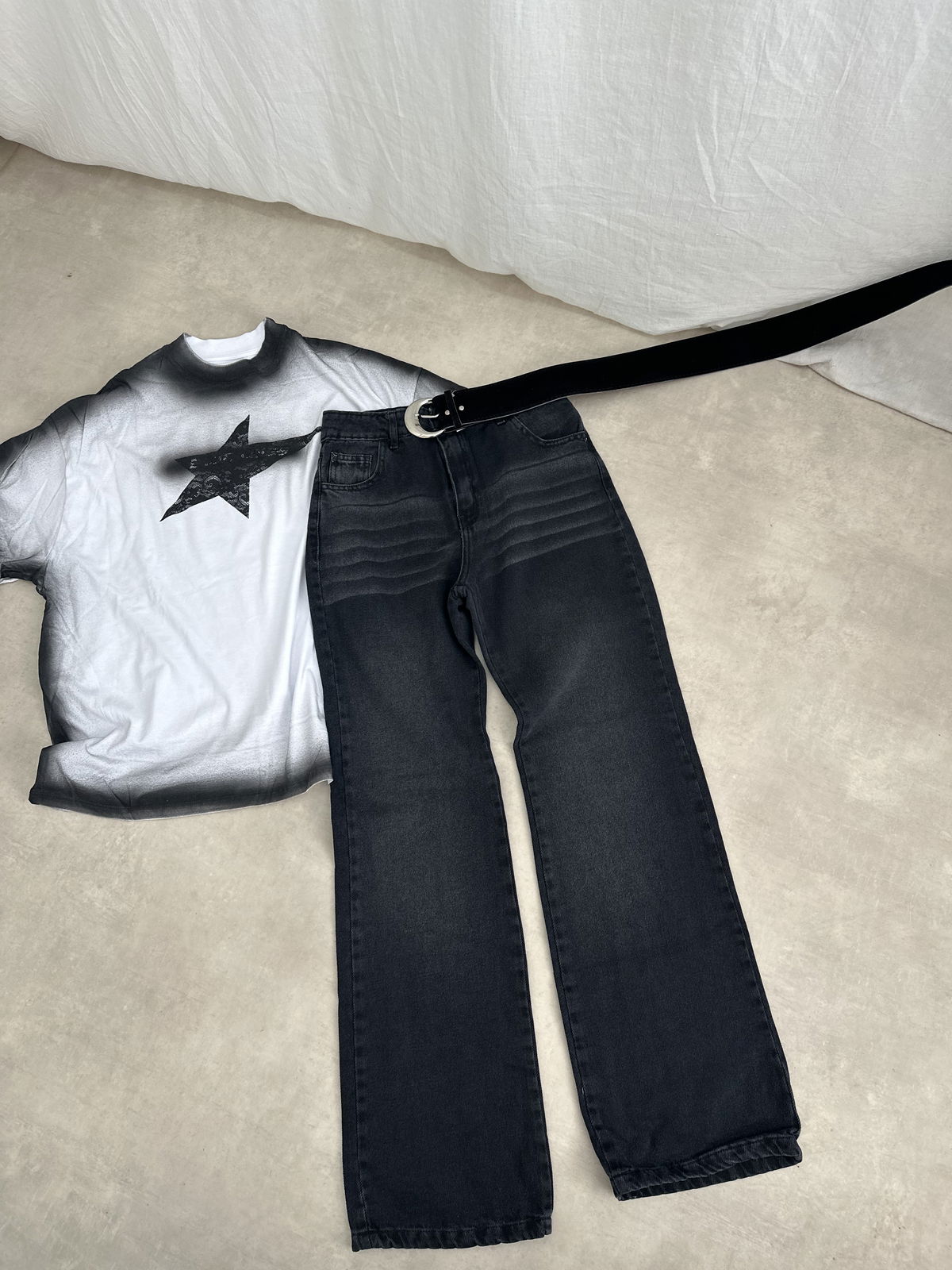 JEAN TIRO ALTO RIGIDO CON DETALLE EN EL FRENTE