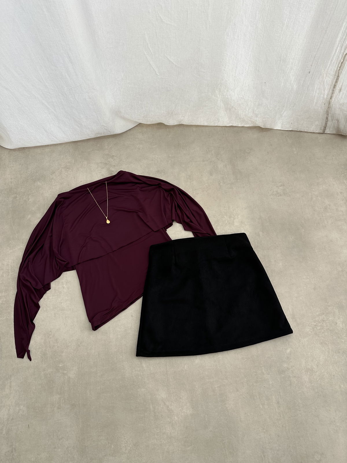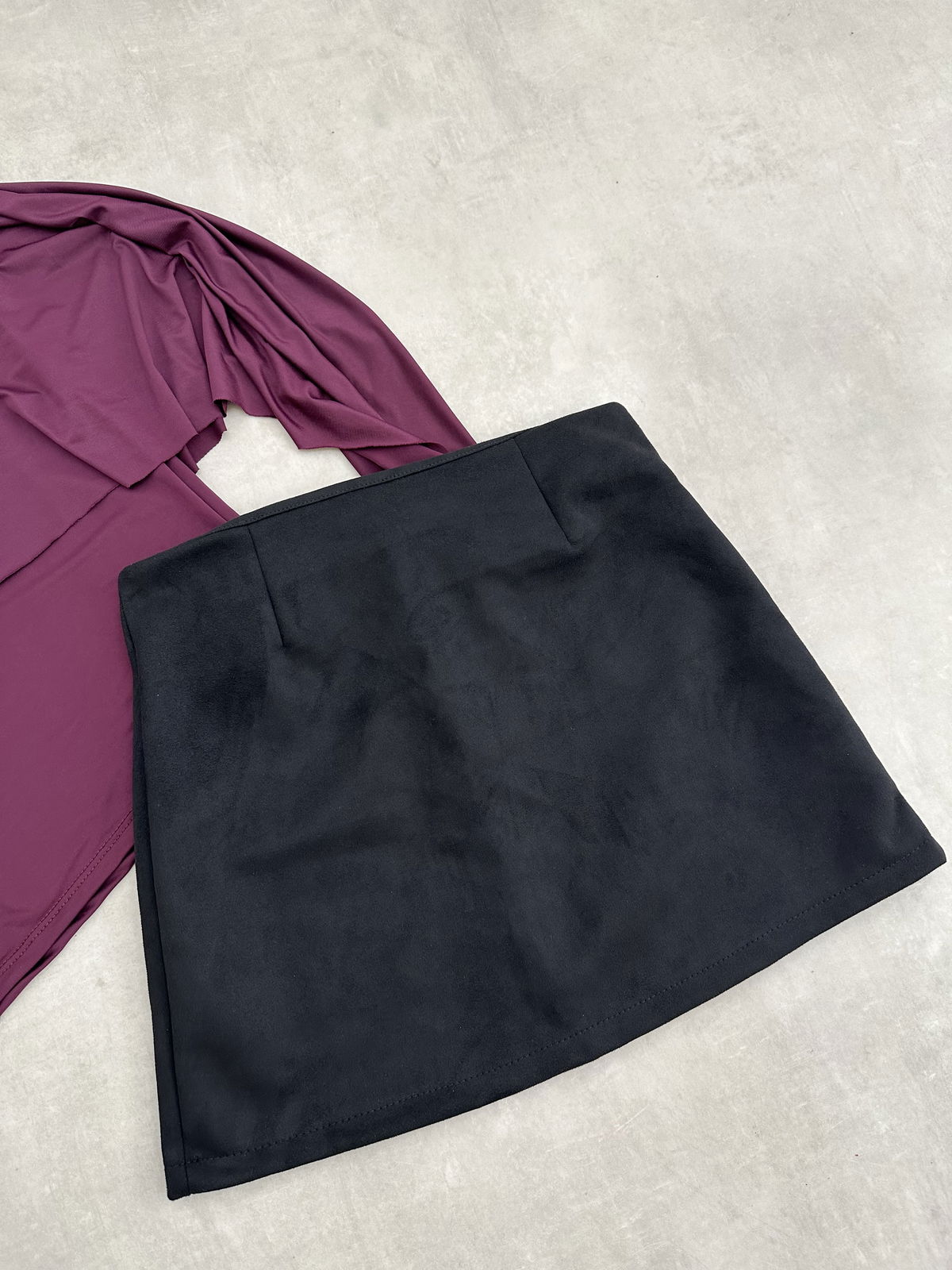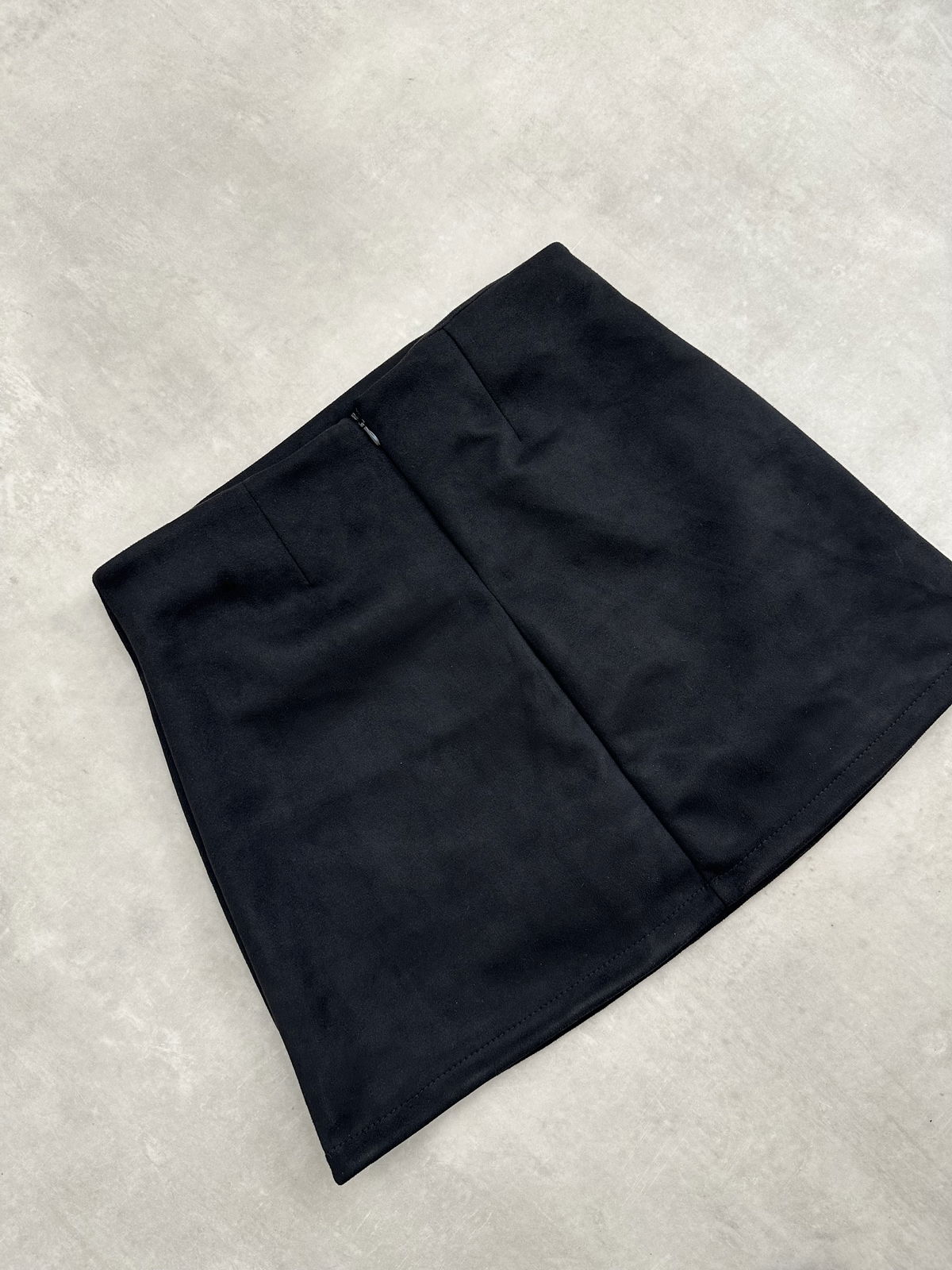 Mini simil gamusa tiro alto con cierre invisible.