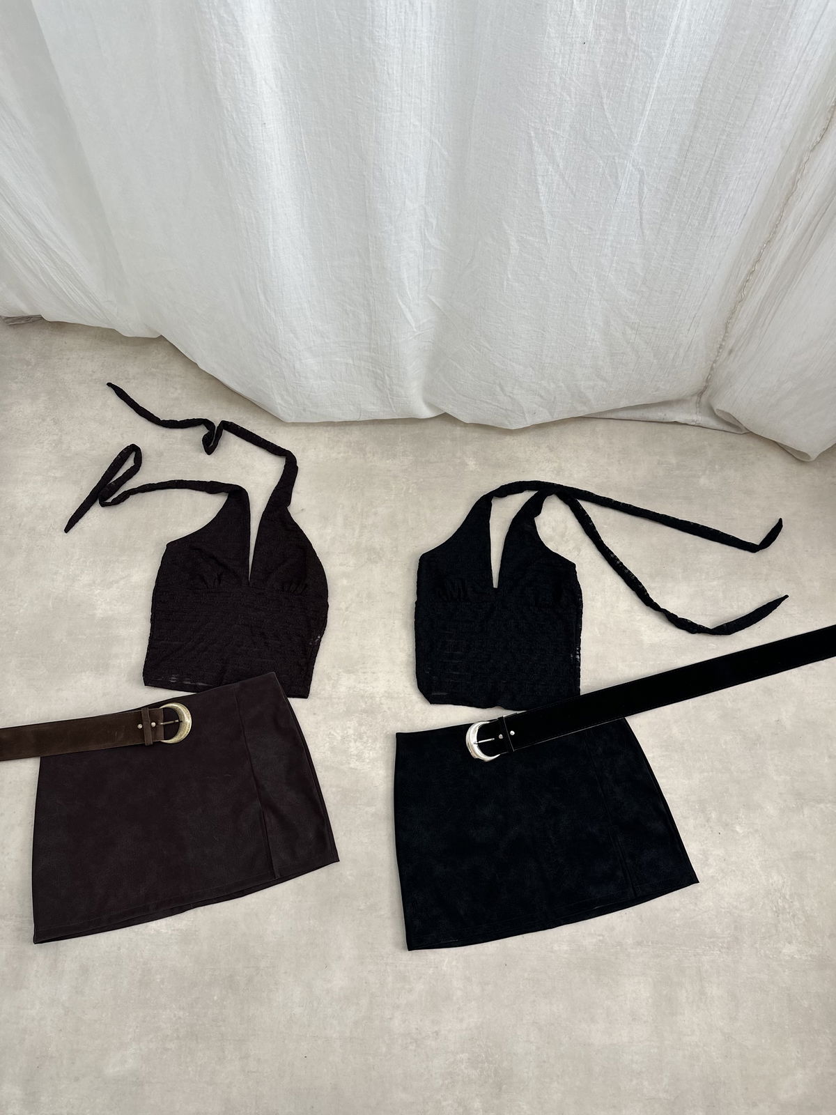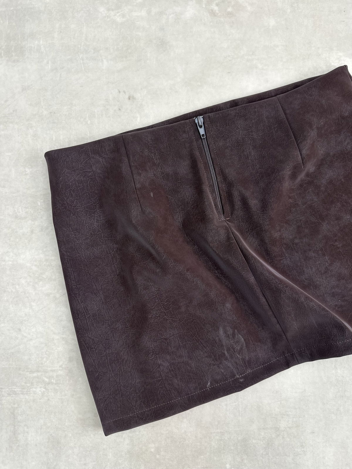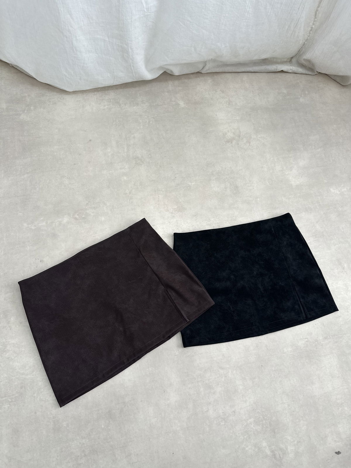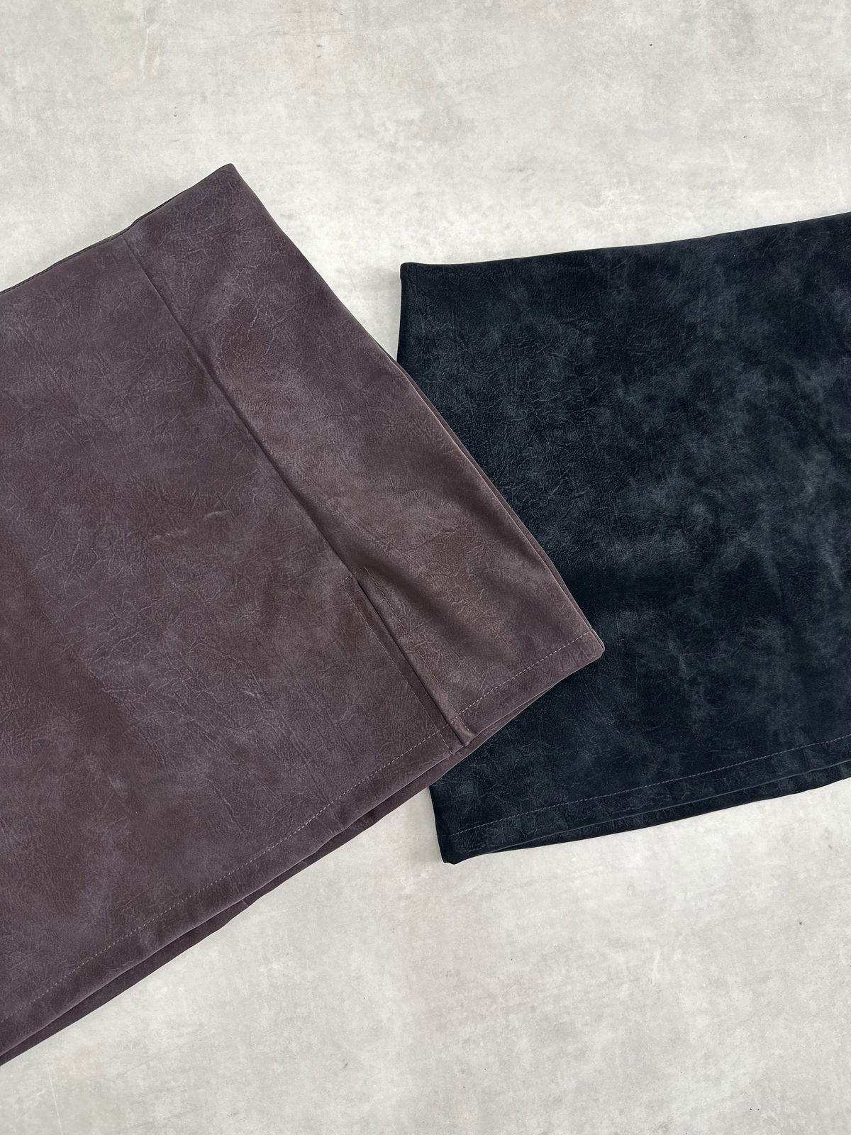 MINI DE ECOCUERO TEXTURADO CON TAJO EN EL FRENTE Y CIERRE TRASERO