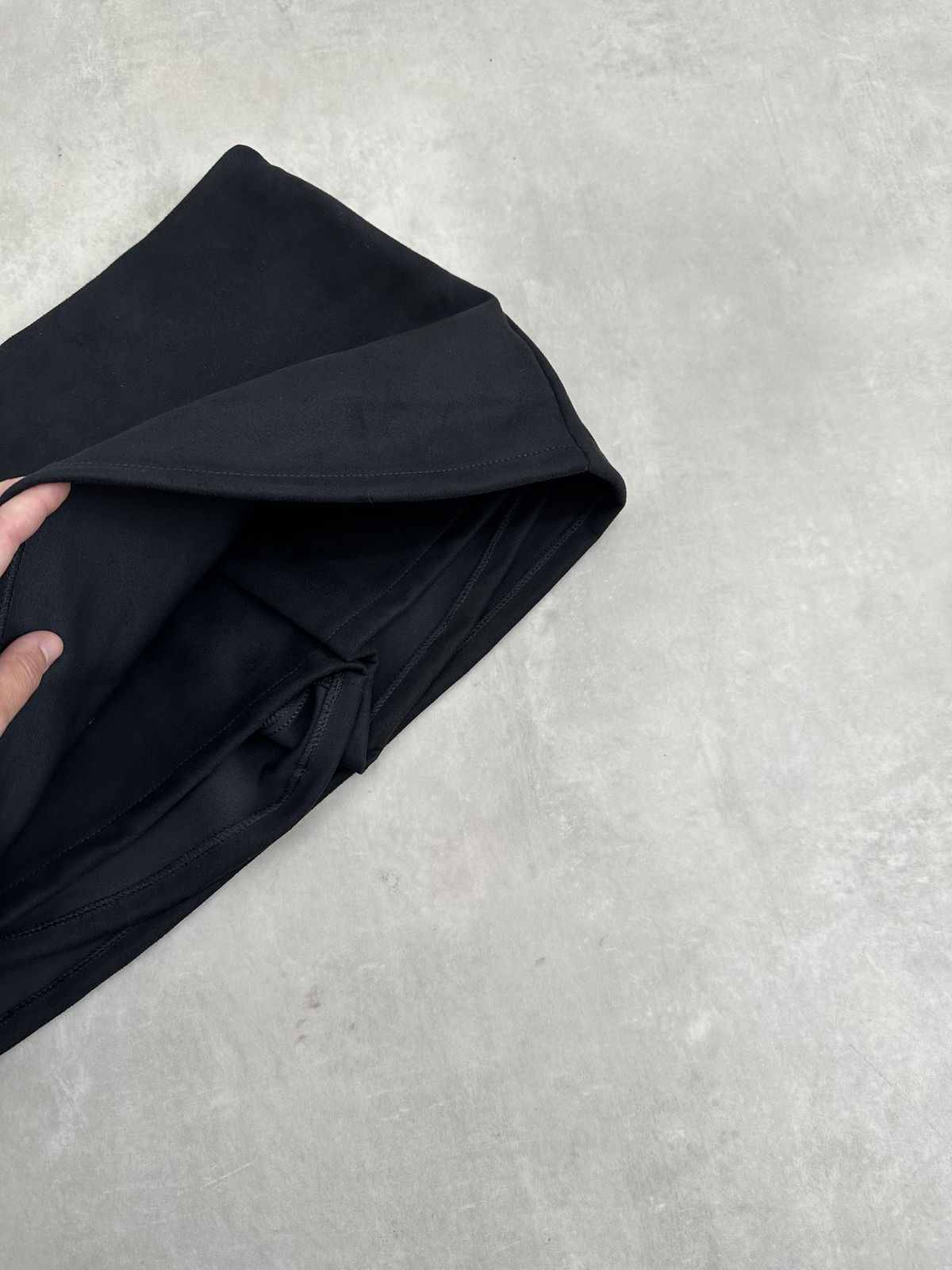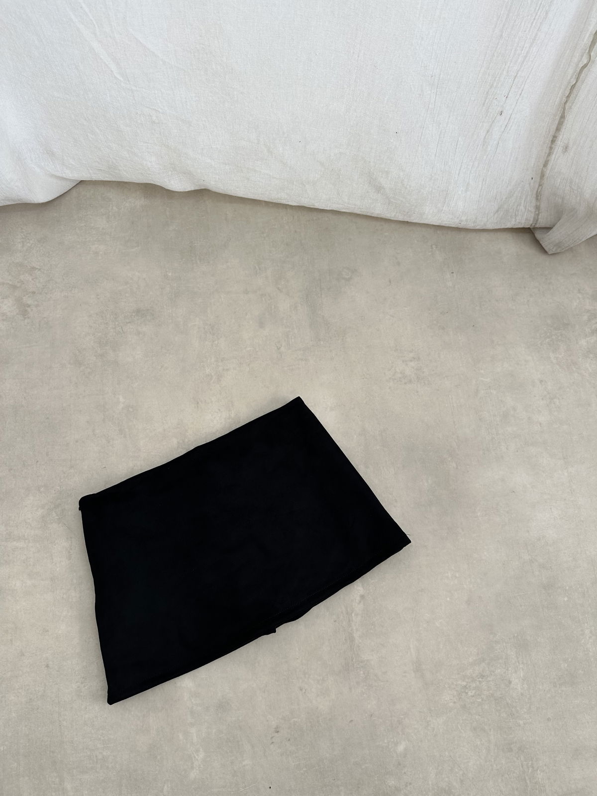 Mini simil gamusa tiro medio bajo con short adentro y cierre invisible.