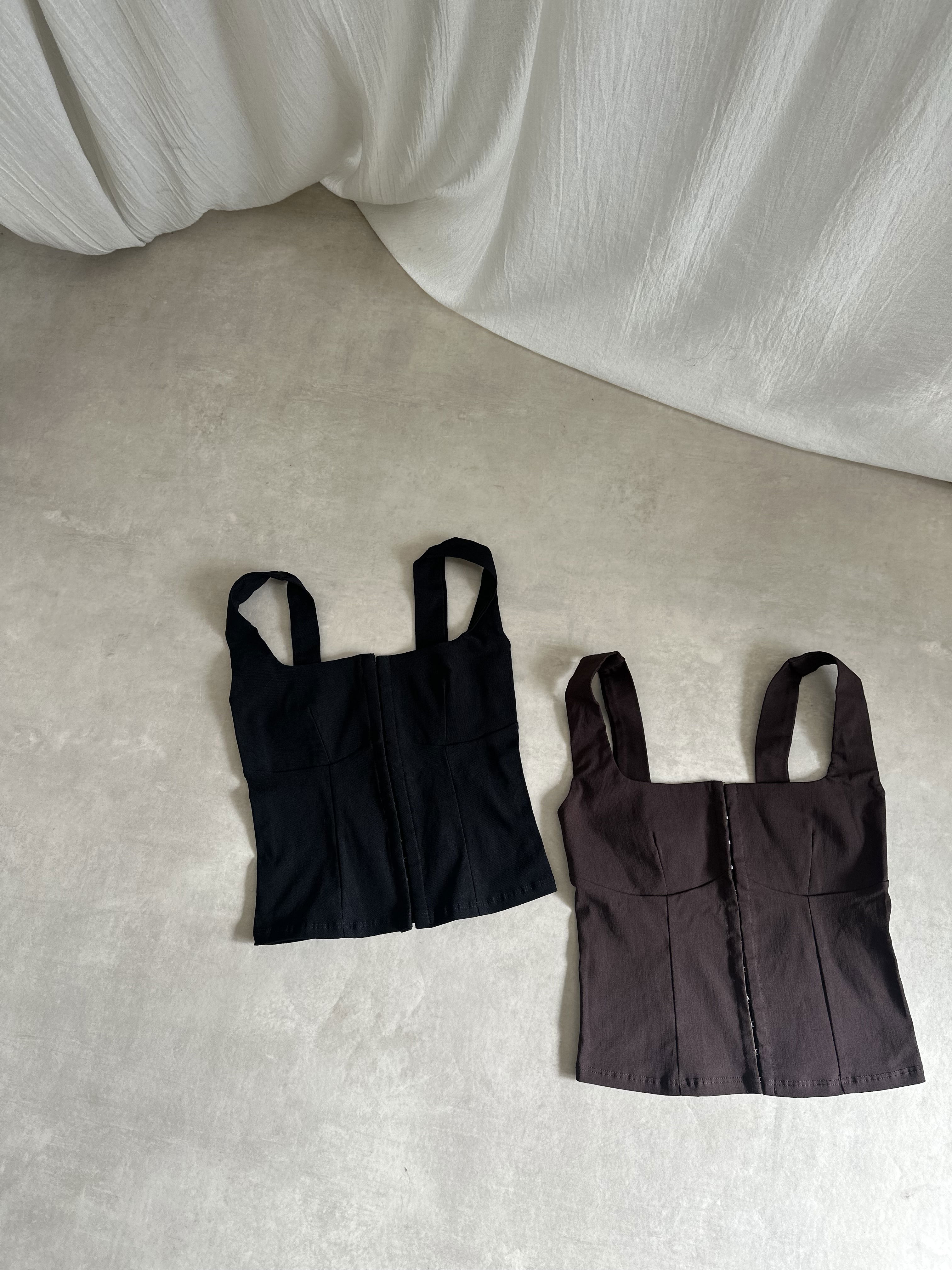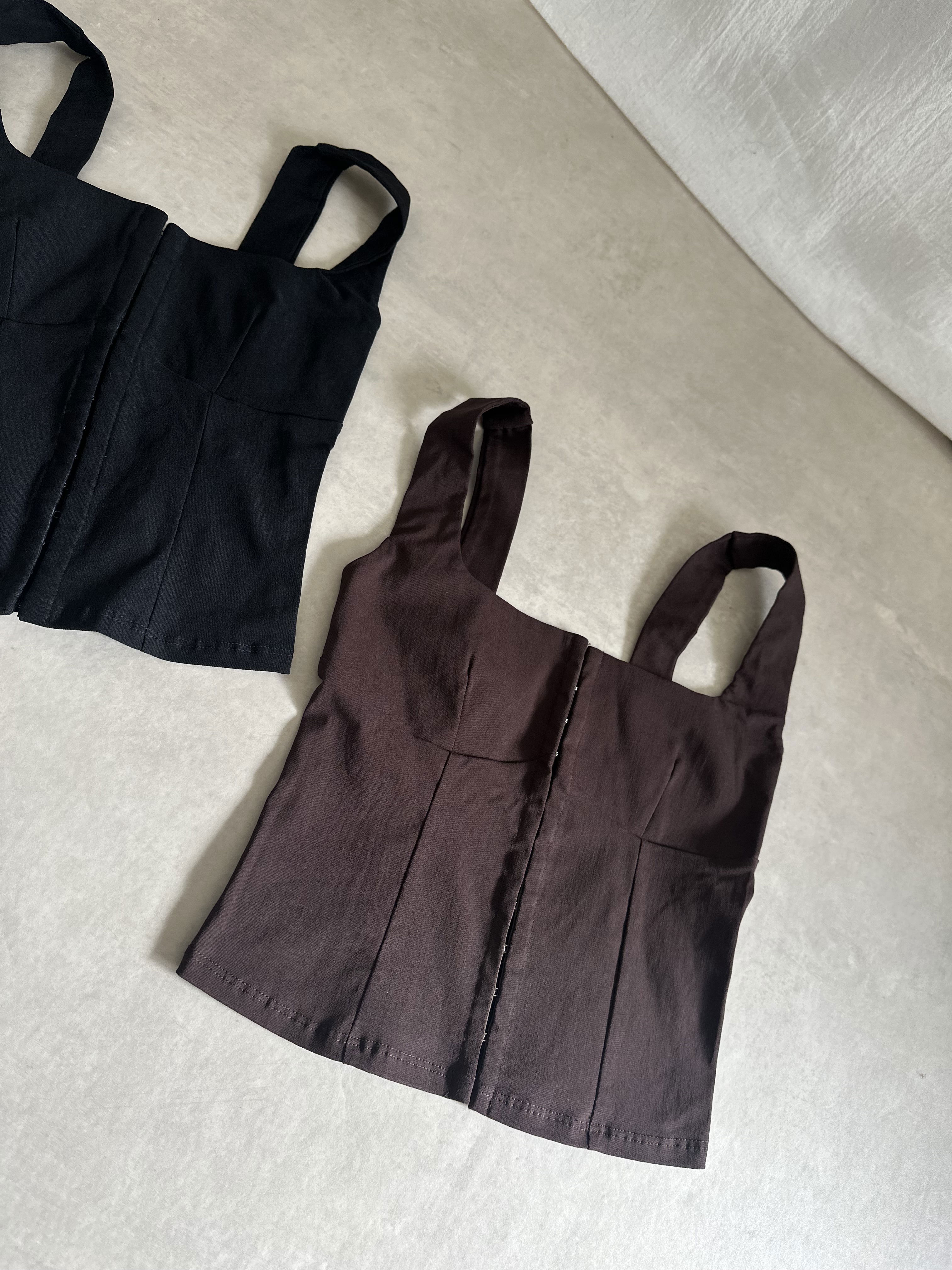 Top estilo corset de bengalina elastisada con broches en la parte del frente.