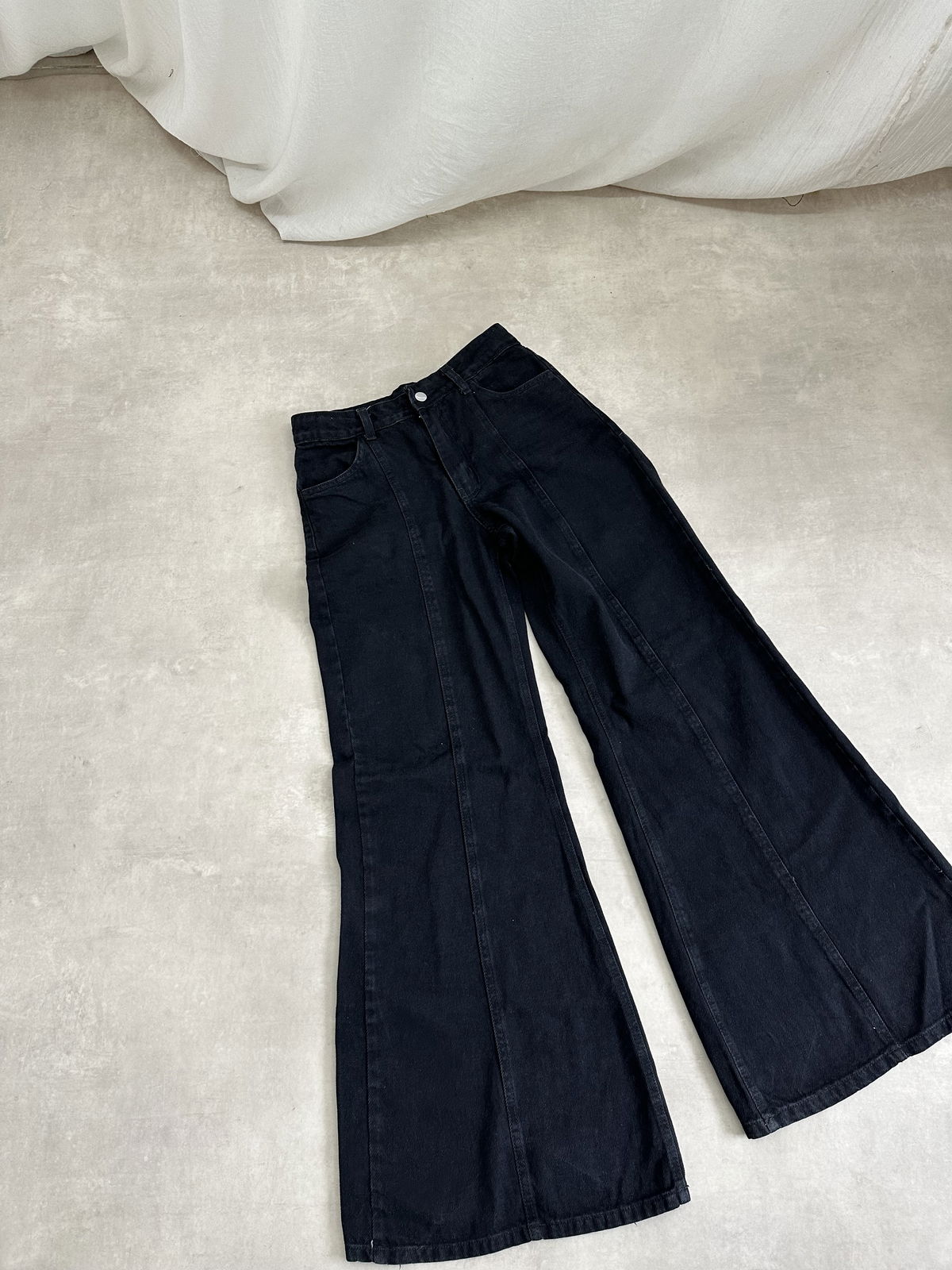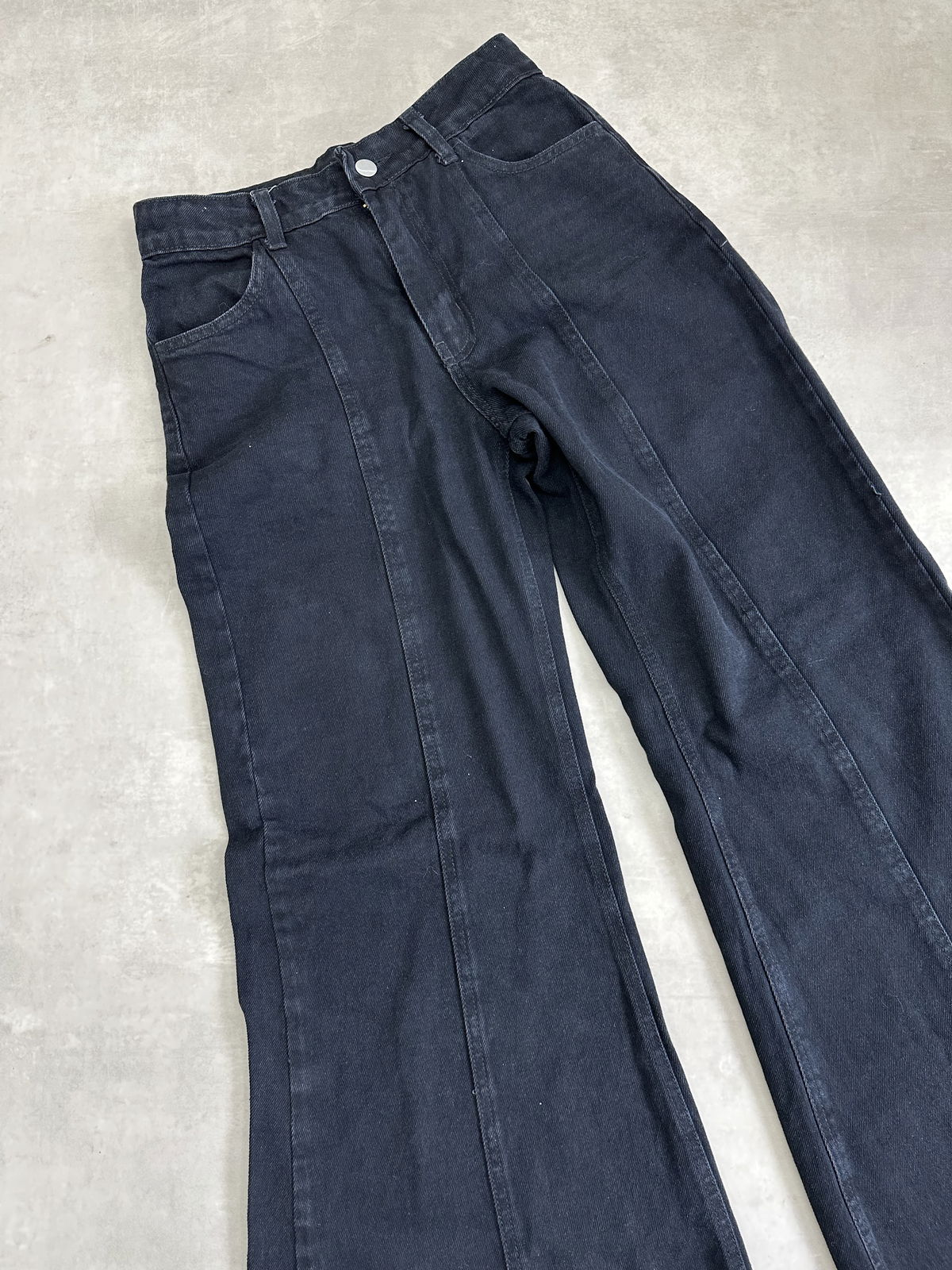 Jean tiro alto rigido de corte Oxford