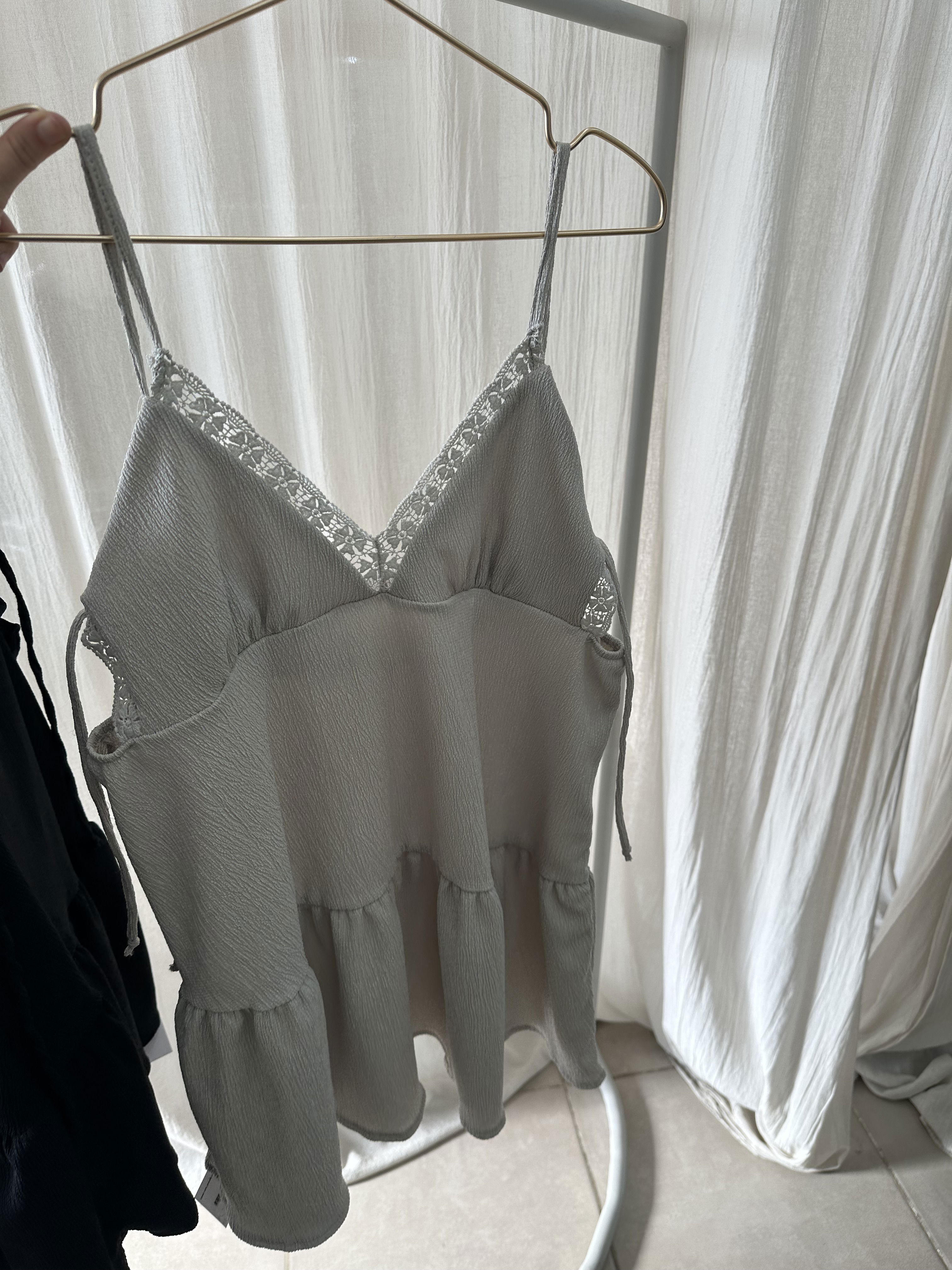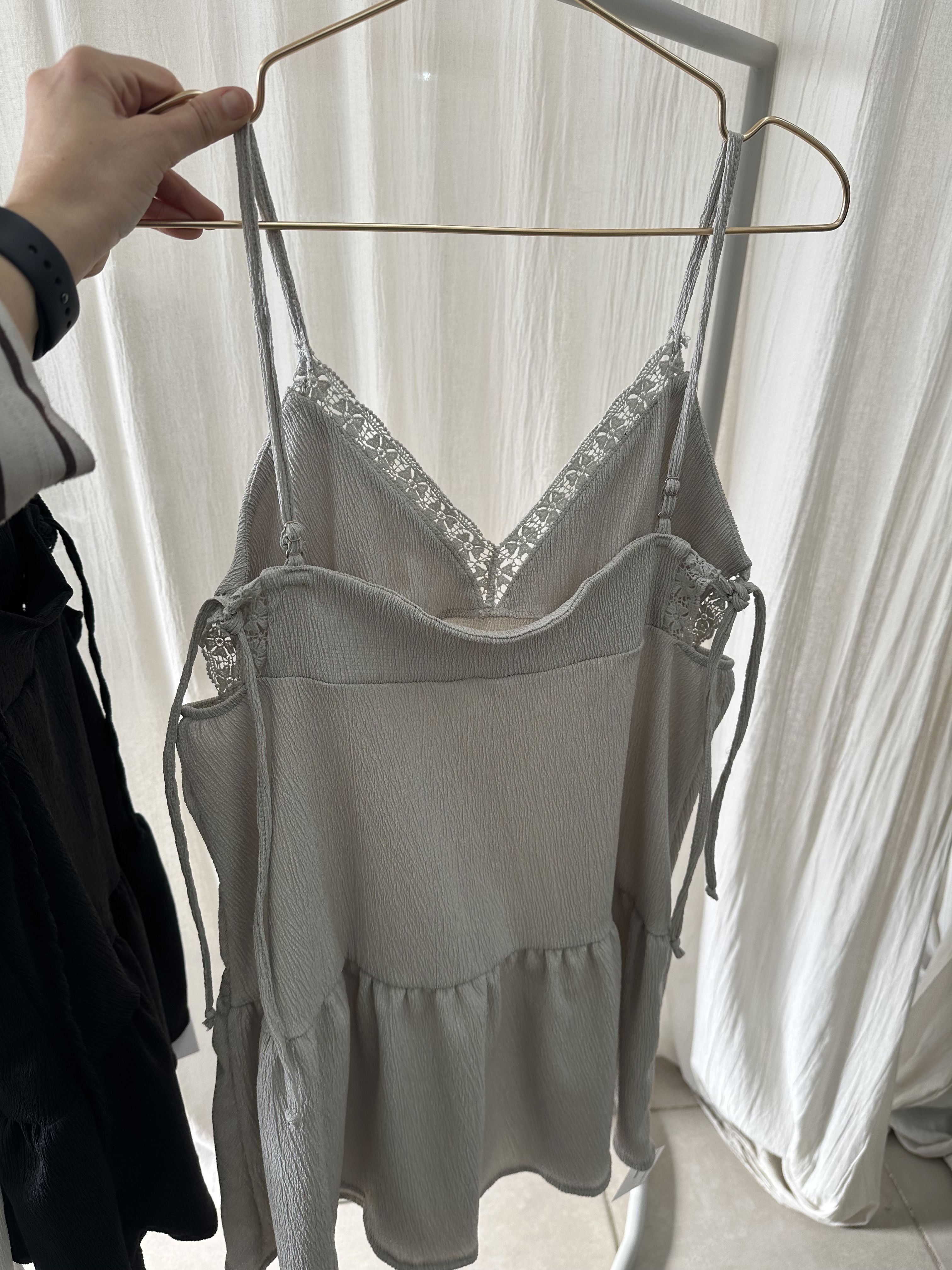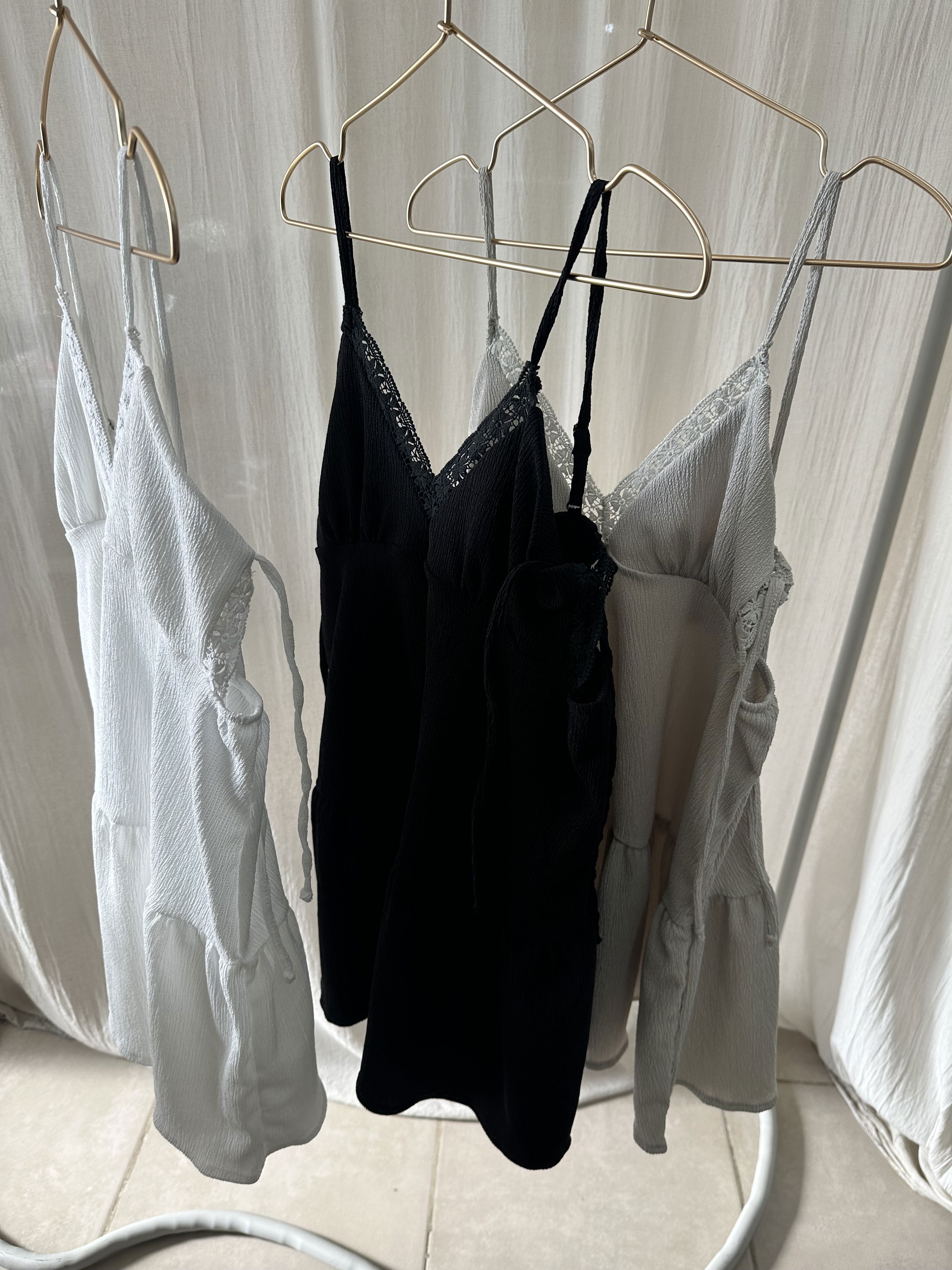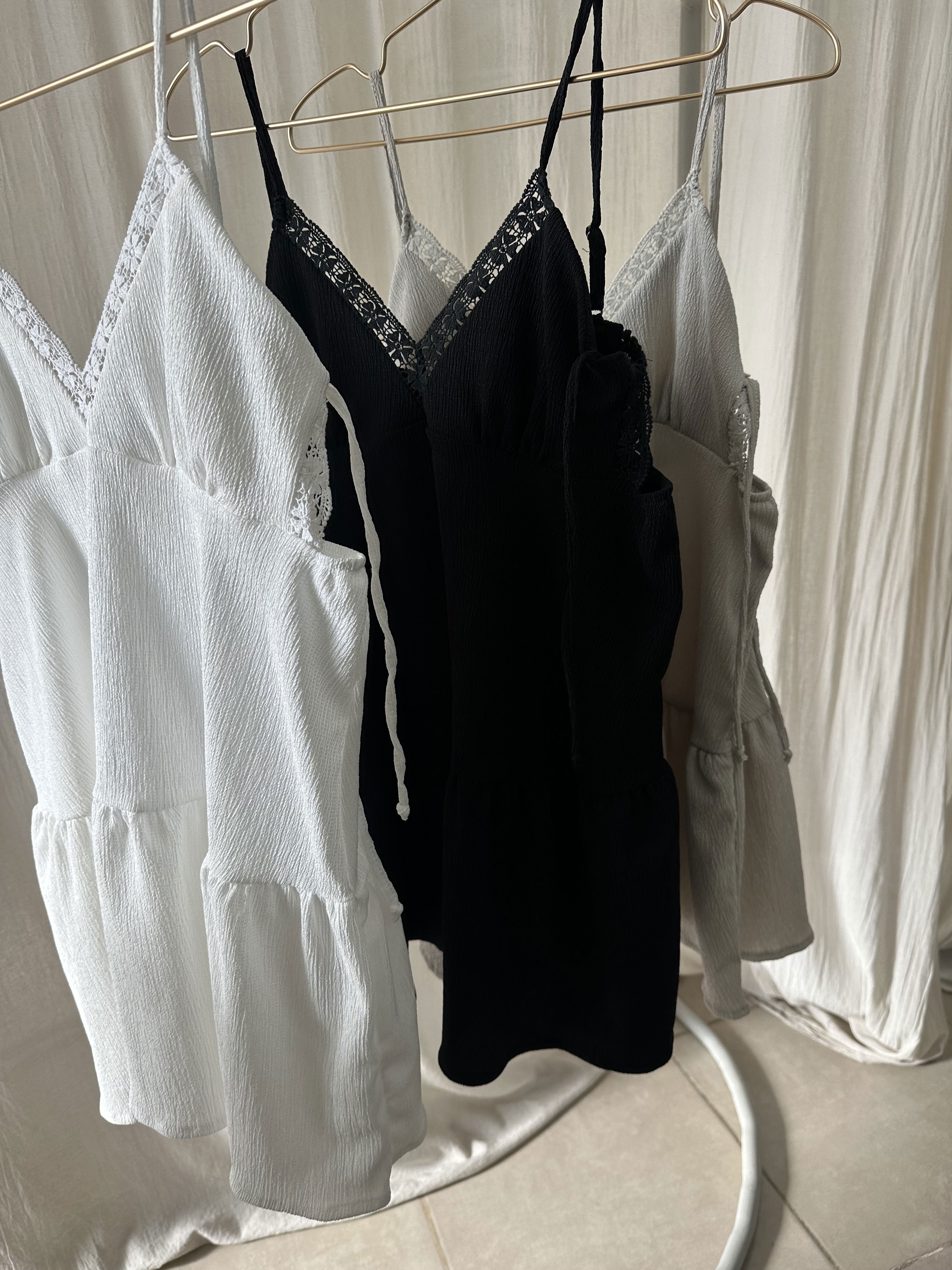 Vestido con tiras regulables y detalles en la sisa para regular con tira de puntilla en el escote