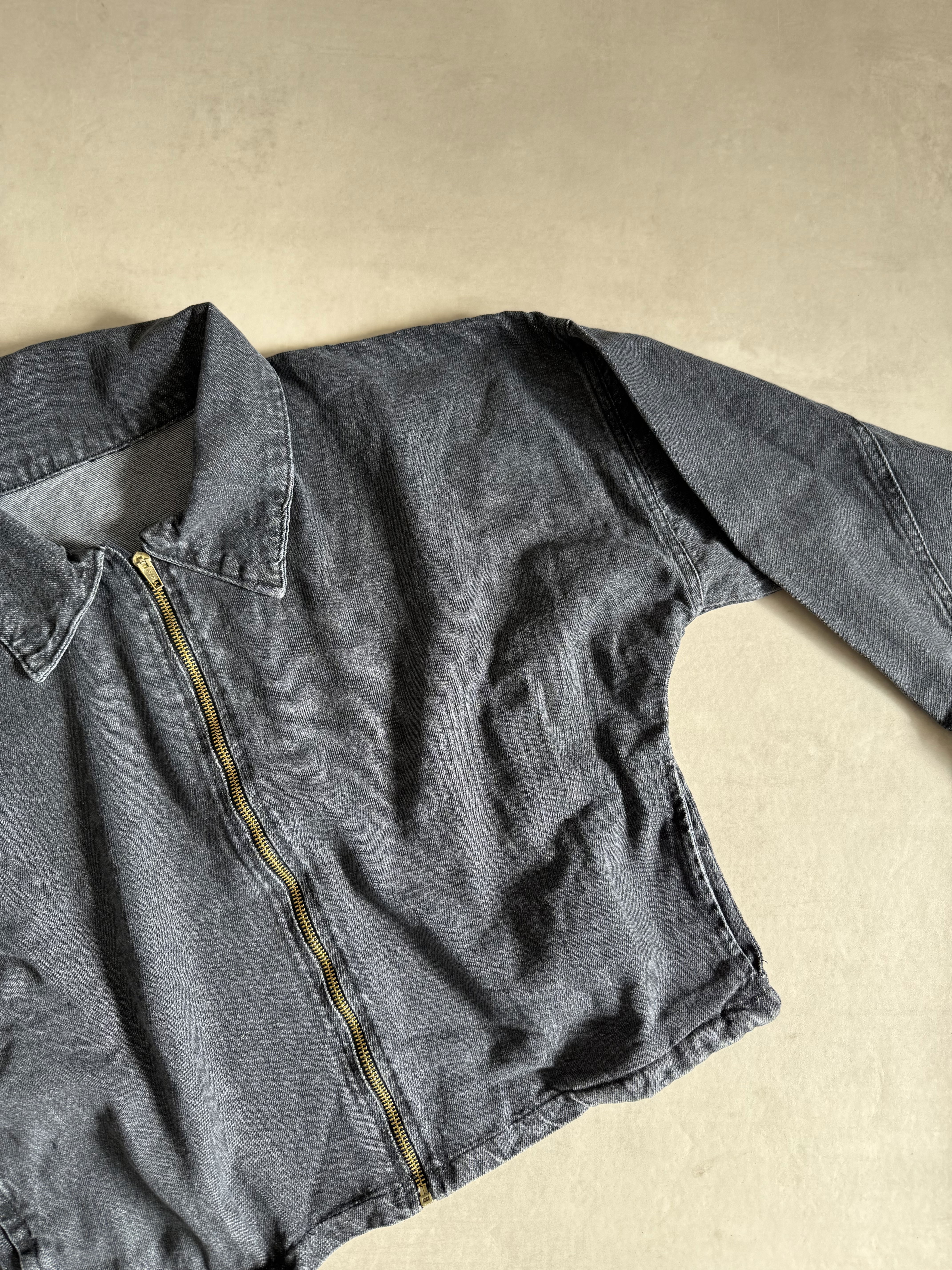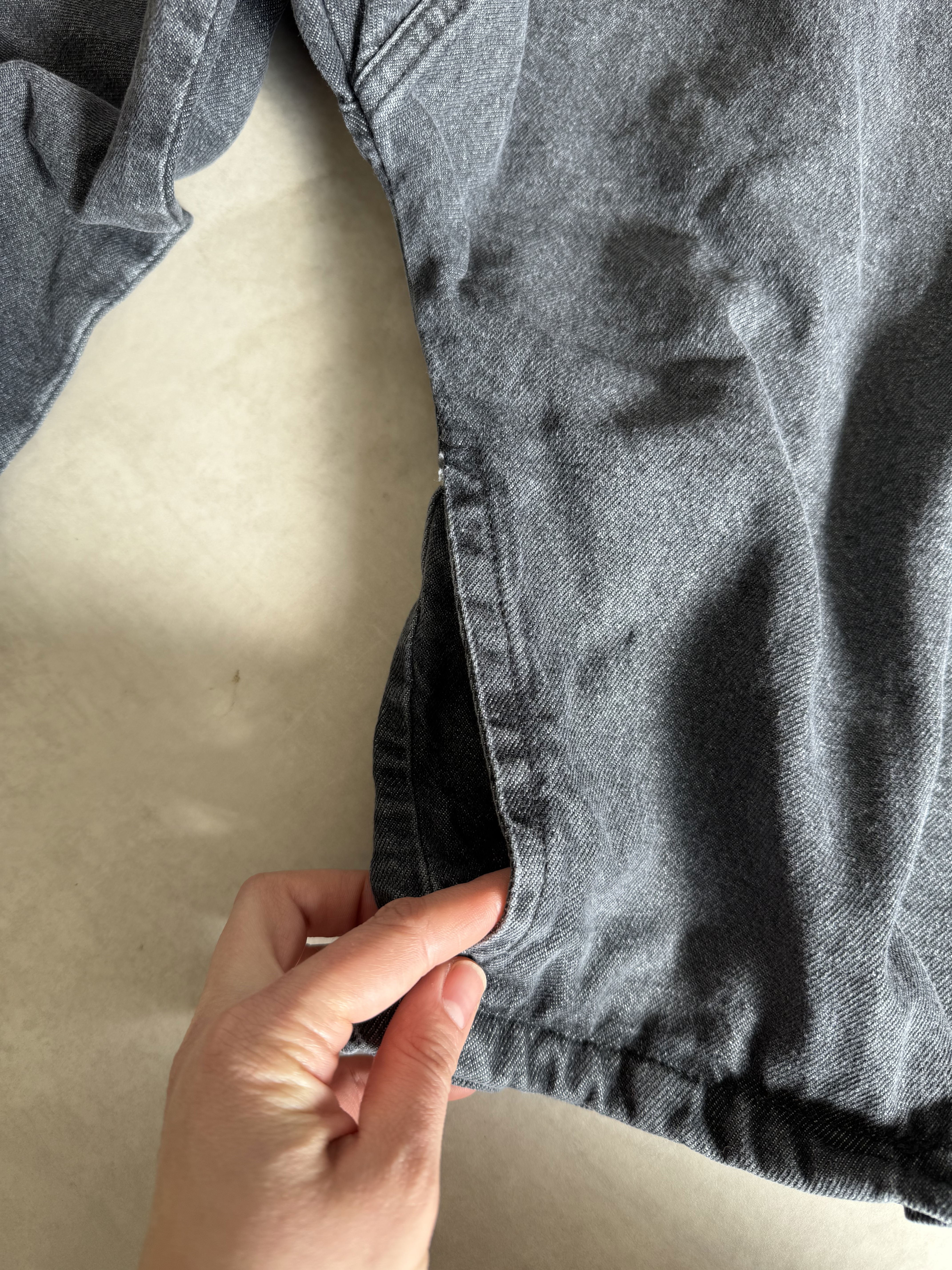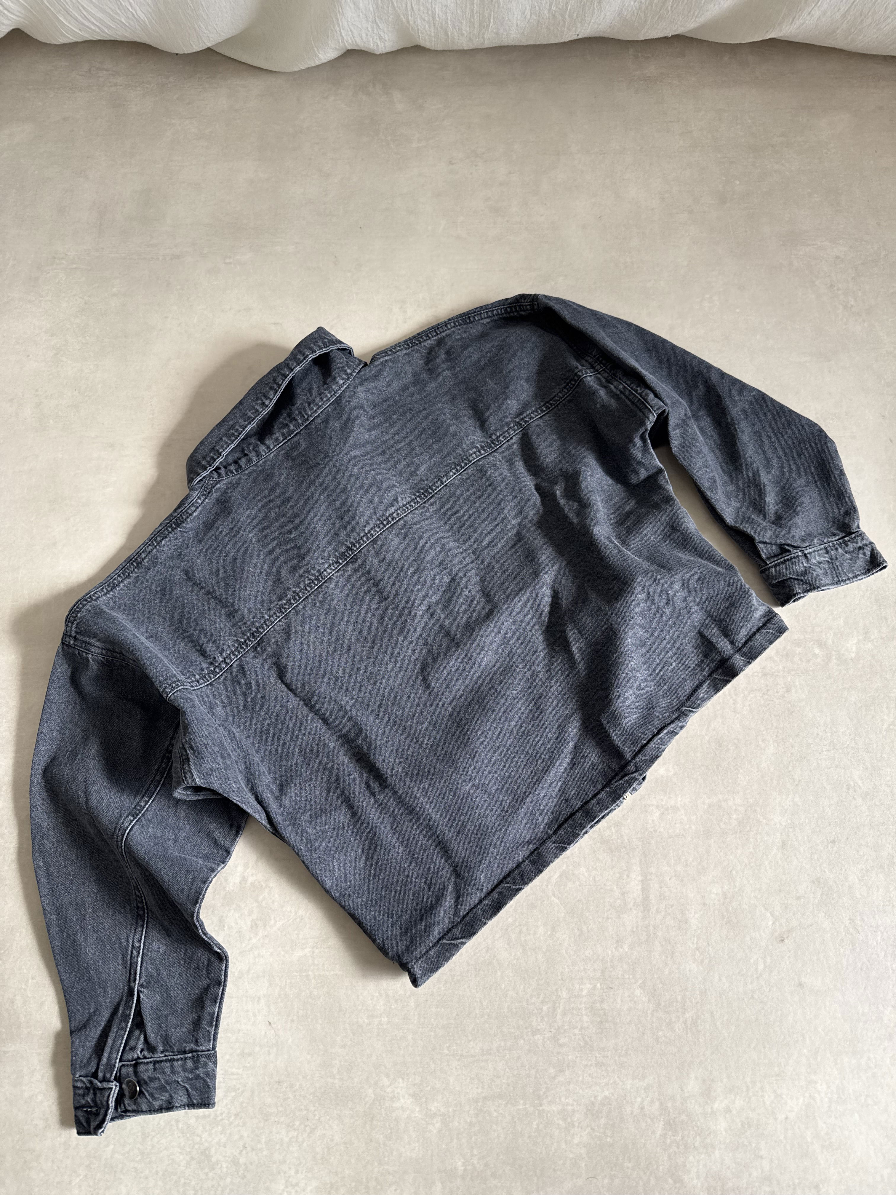 Campera de denim prelavada gris, con bolsillos y cierre en el frente. El corte es oversized :)
