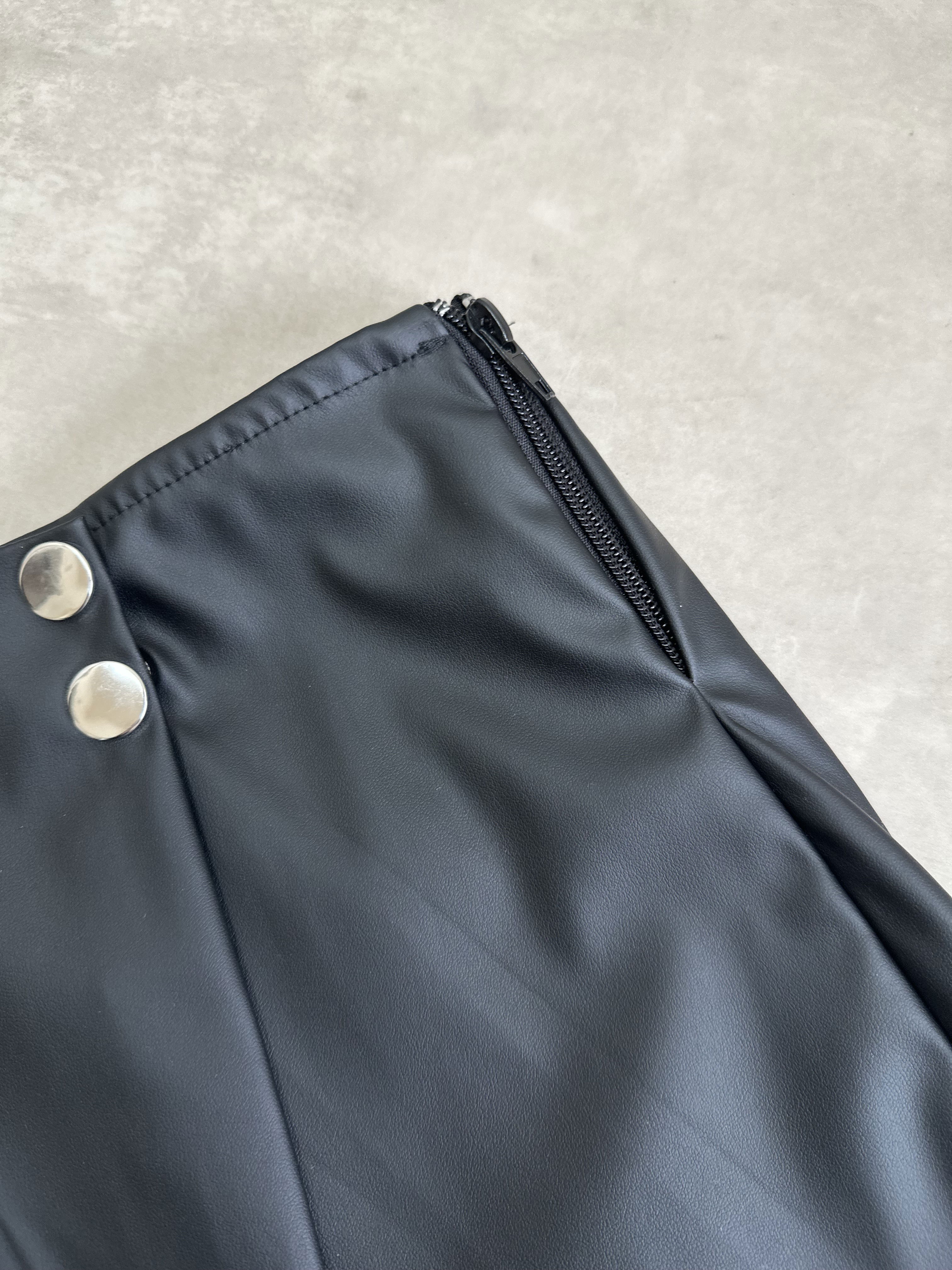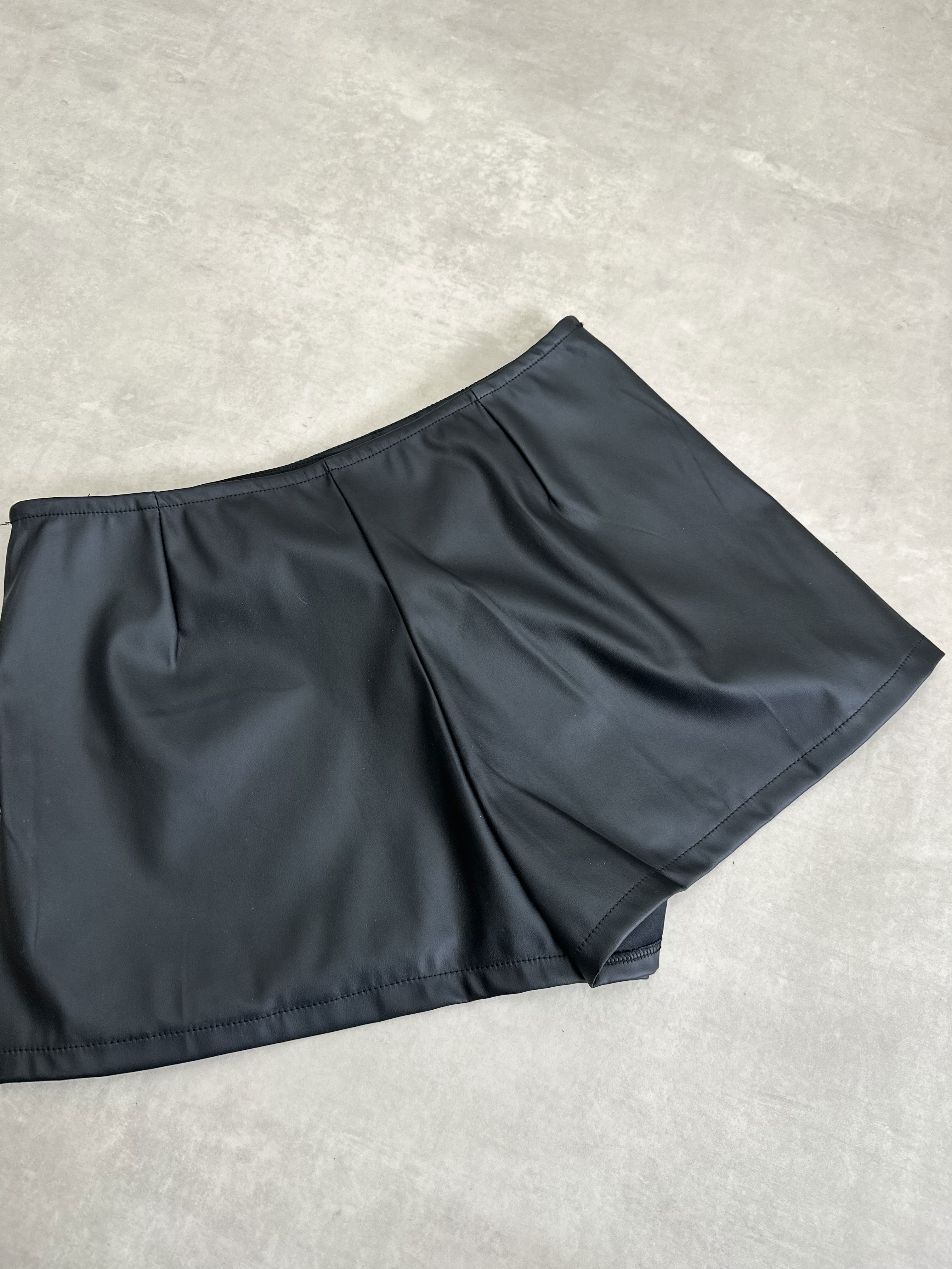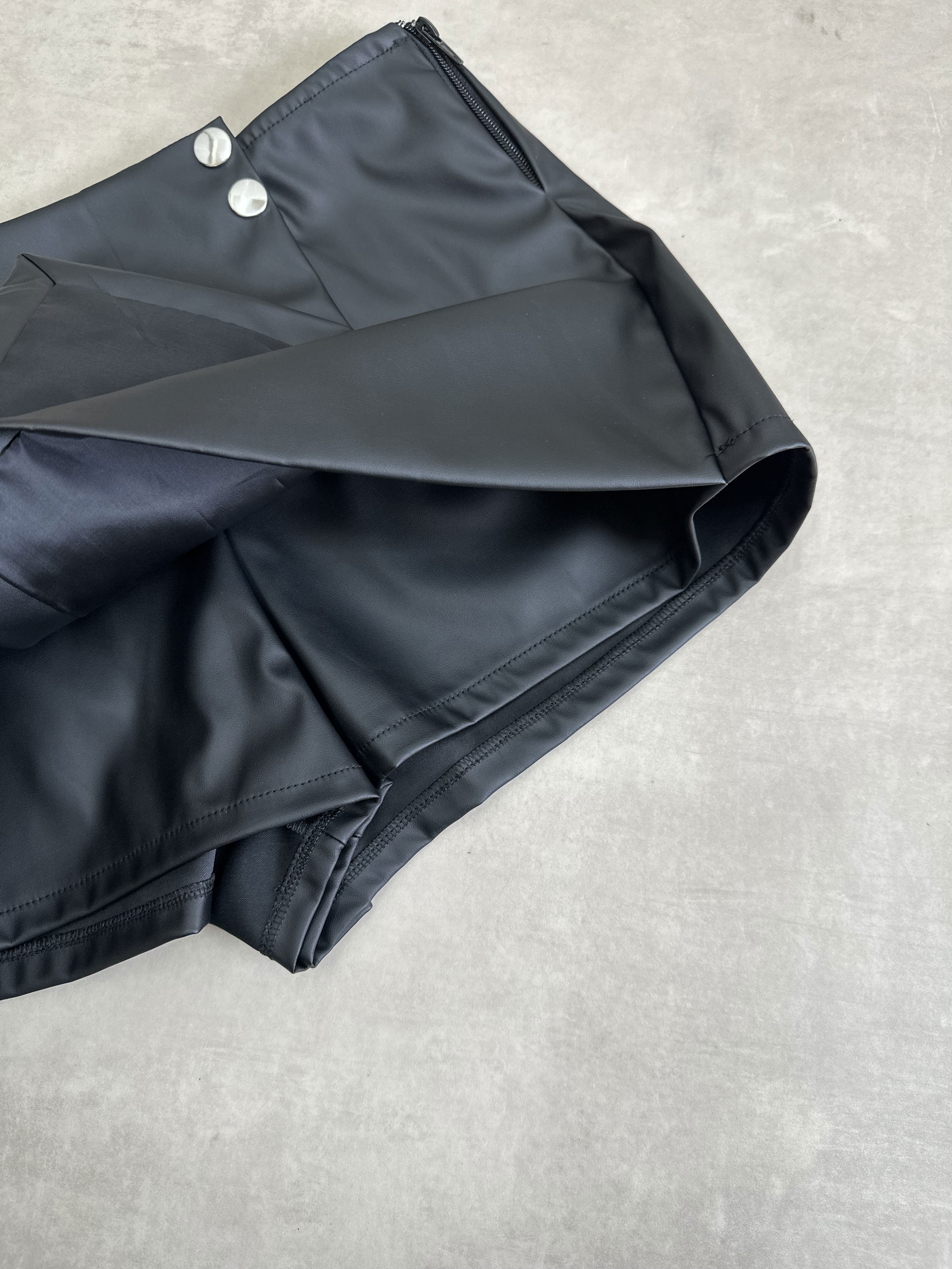 Minishort de ecocuero con detalle de broches al frente y cierre en el lateral