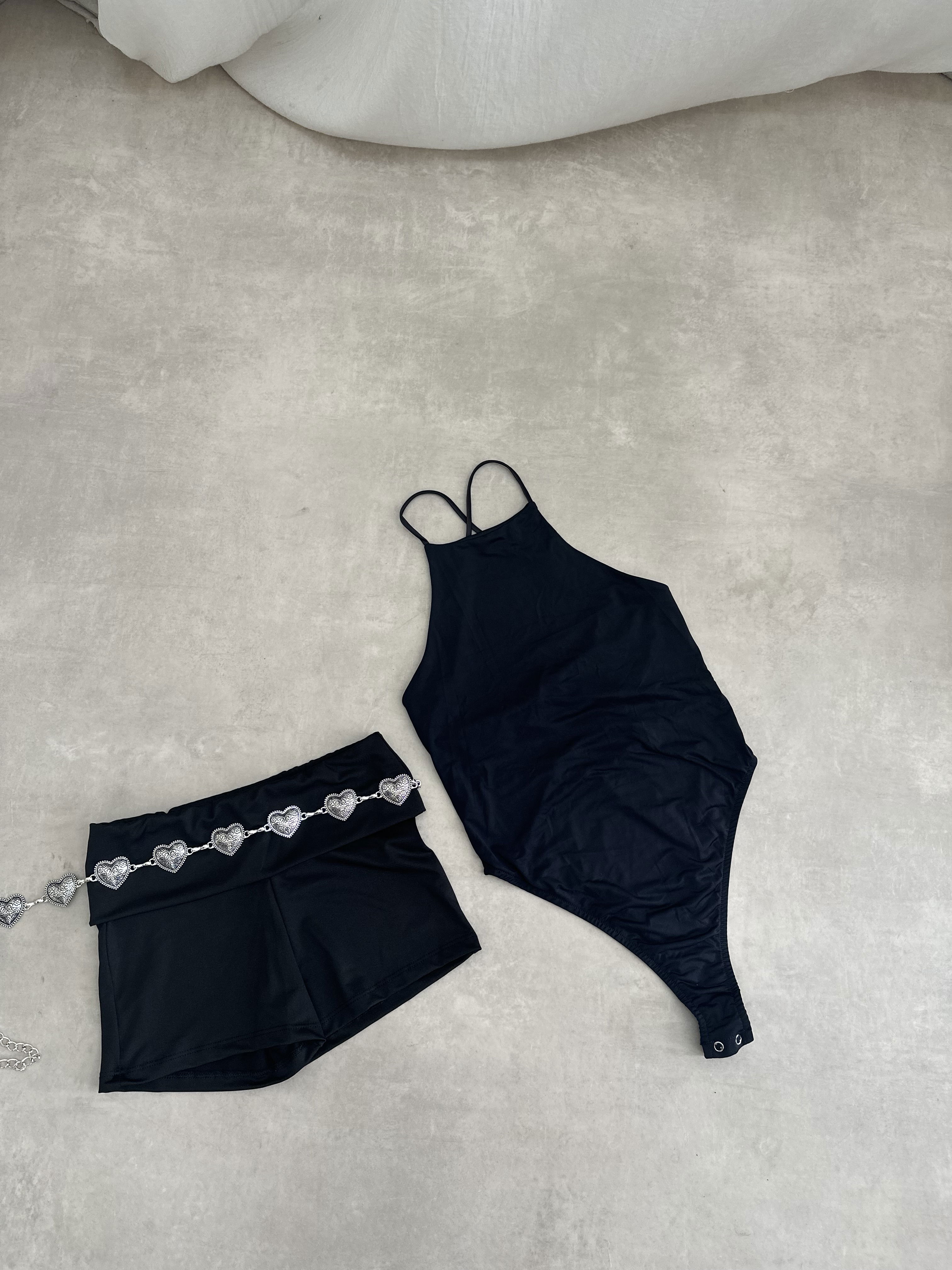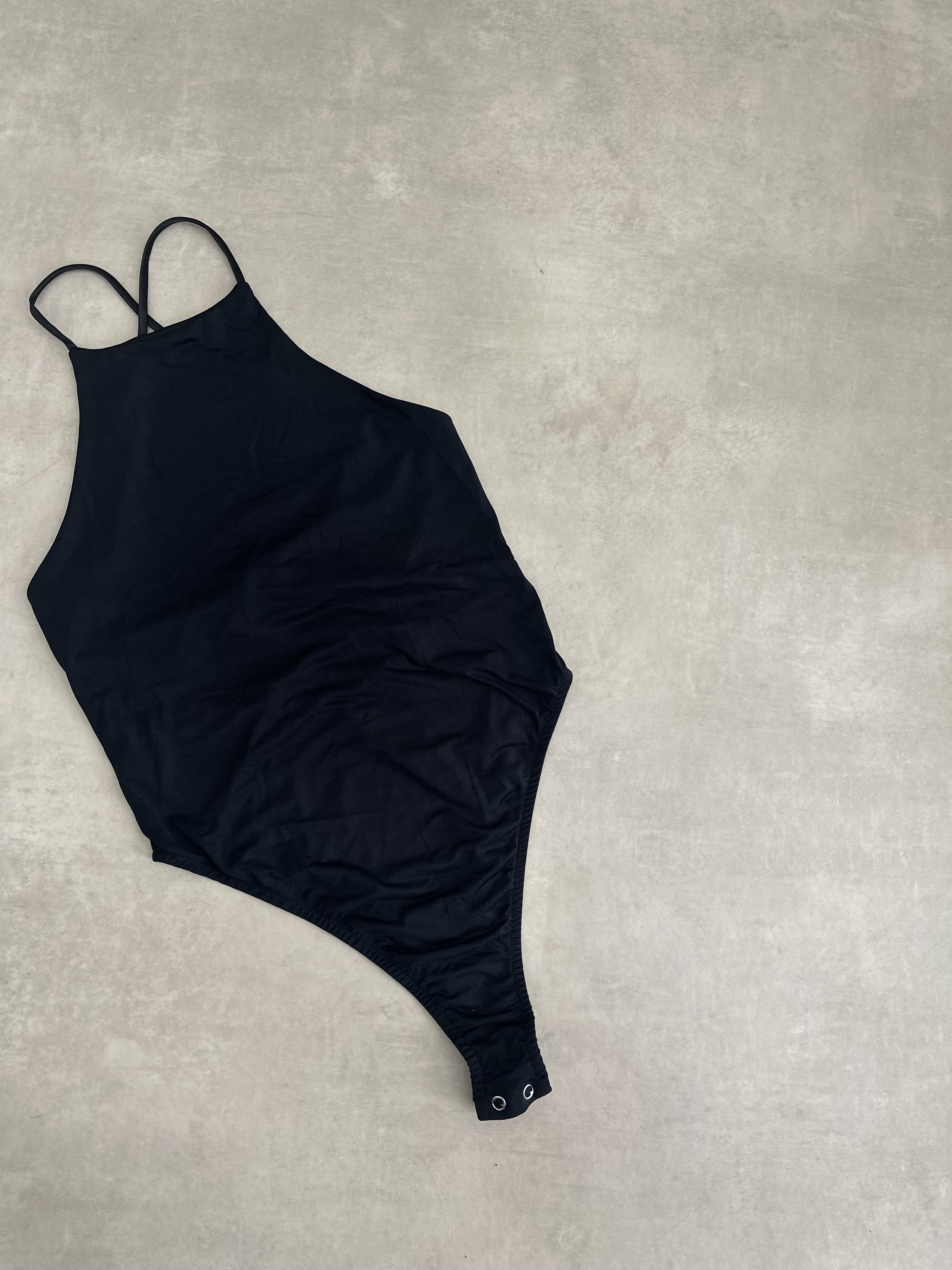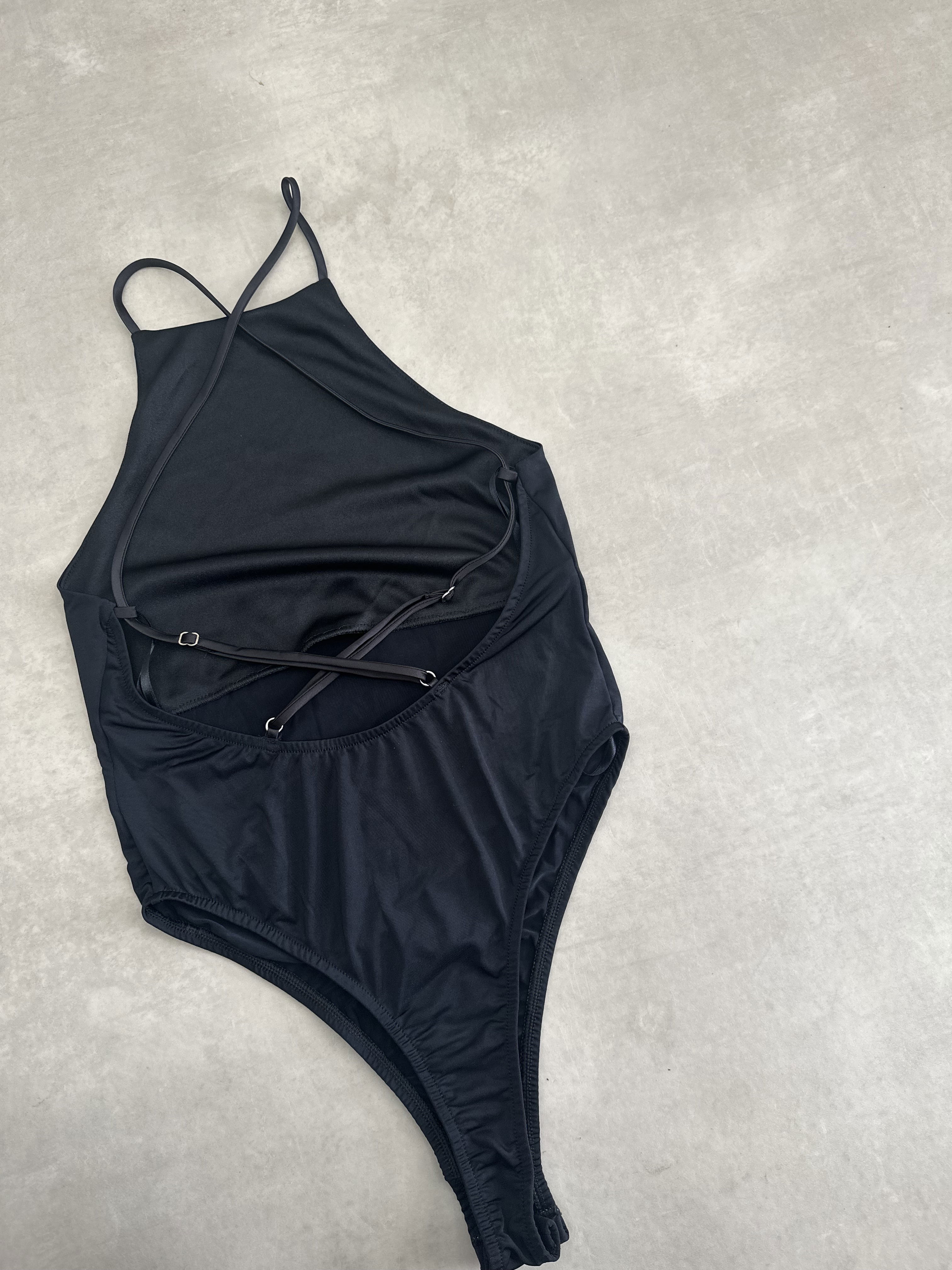 Body de microfibra forrado con espalda descubierta con tiras regulables y broches en la zona baja para mejor acceso