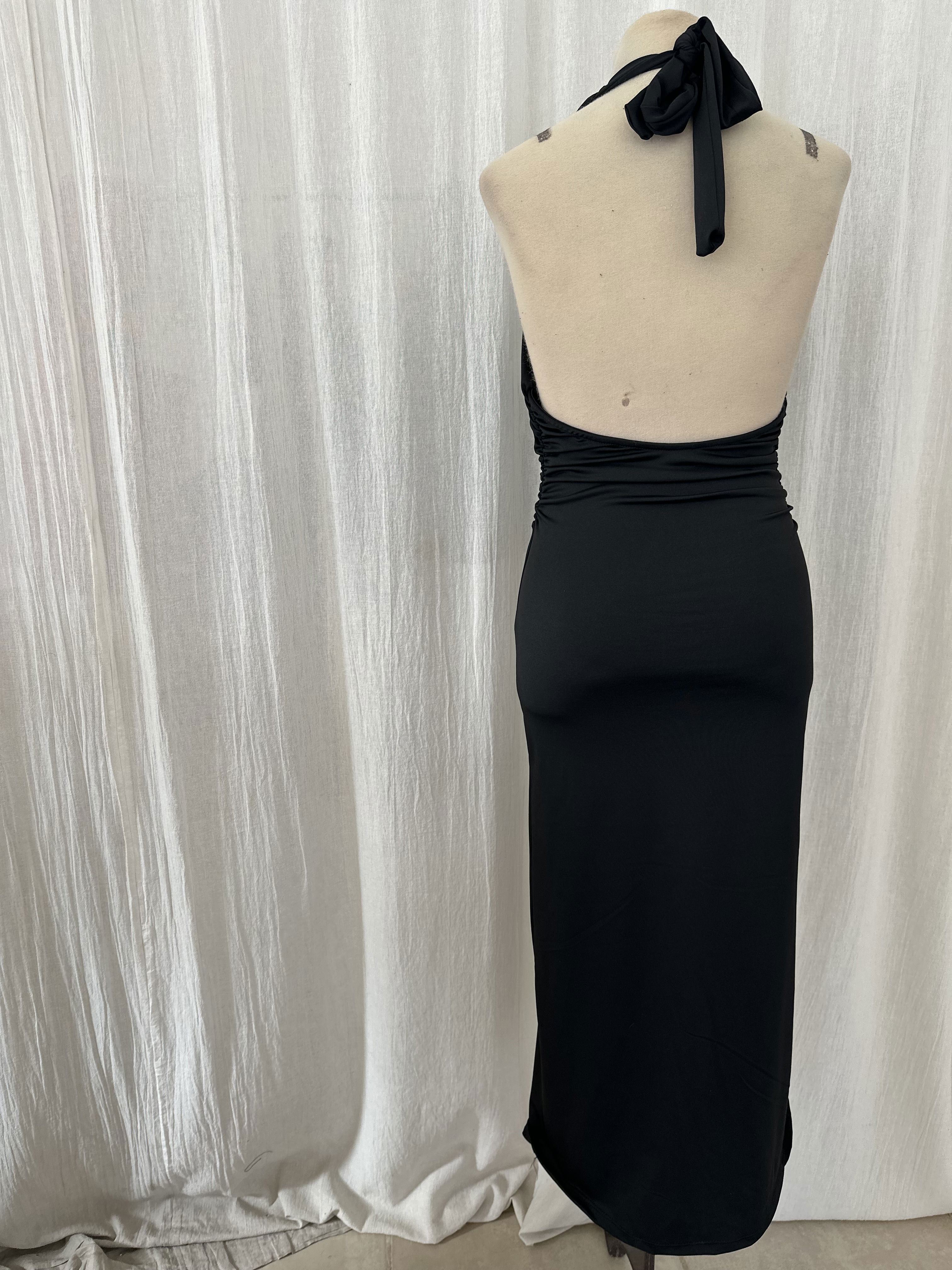 Vestido de microfibra con Tajo en el lateral y espalda descubierta