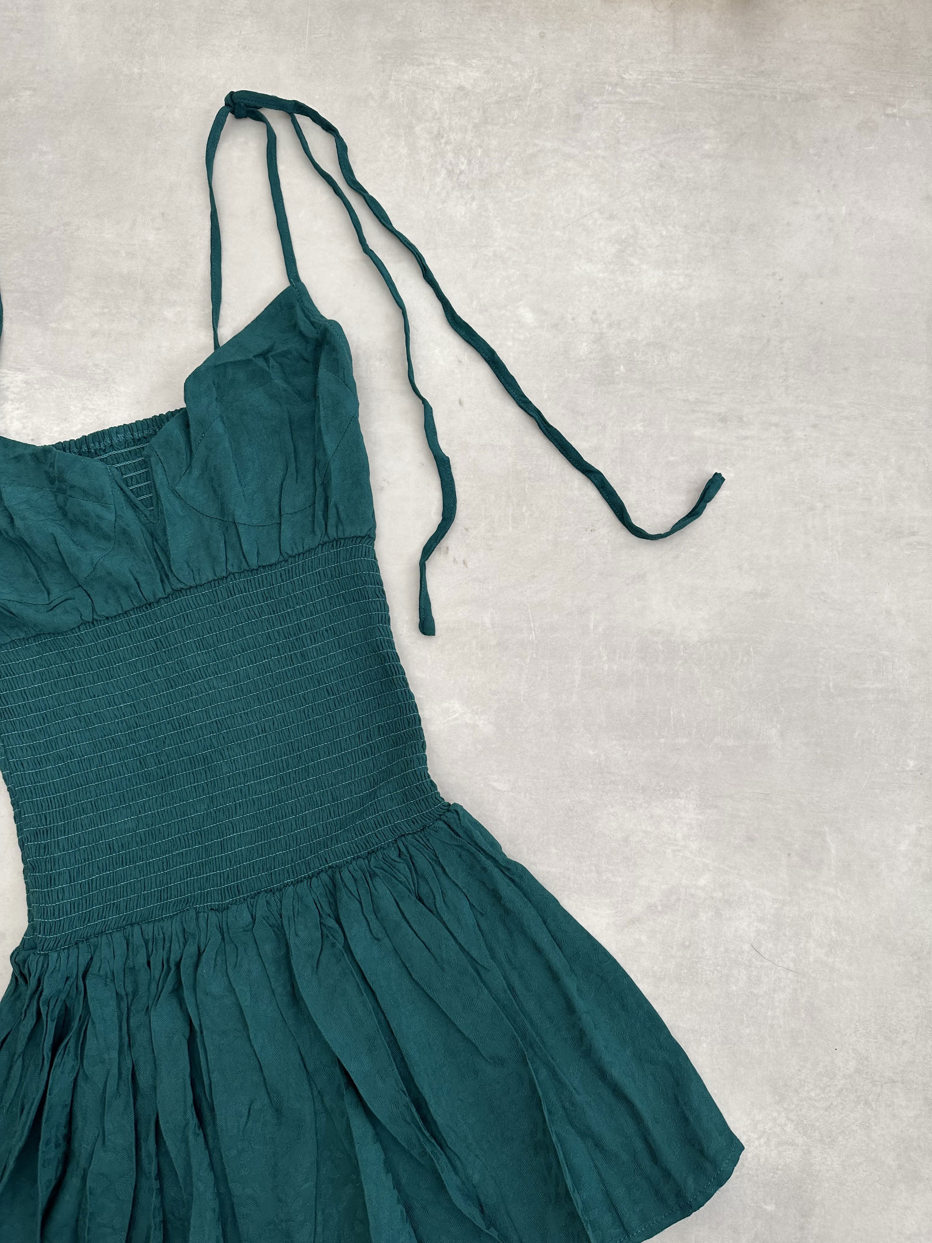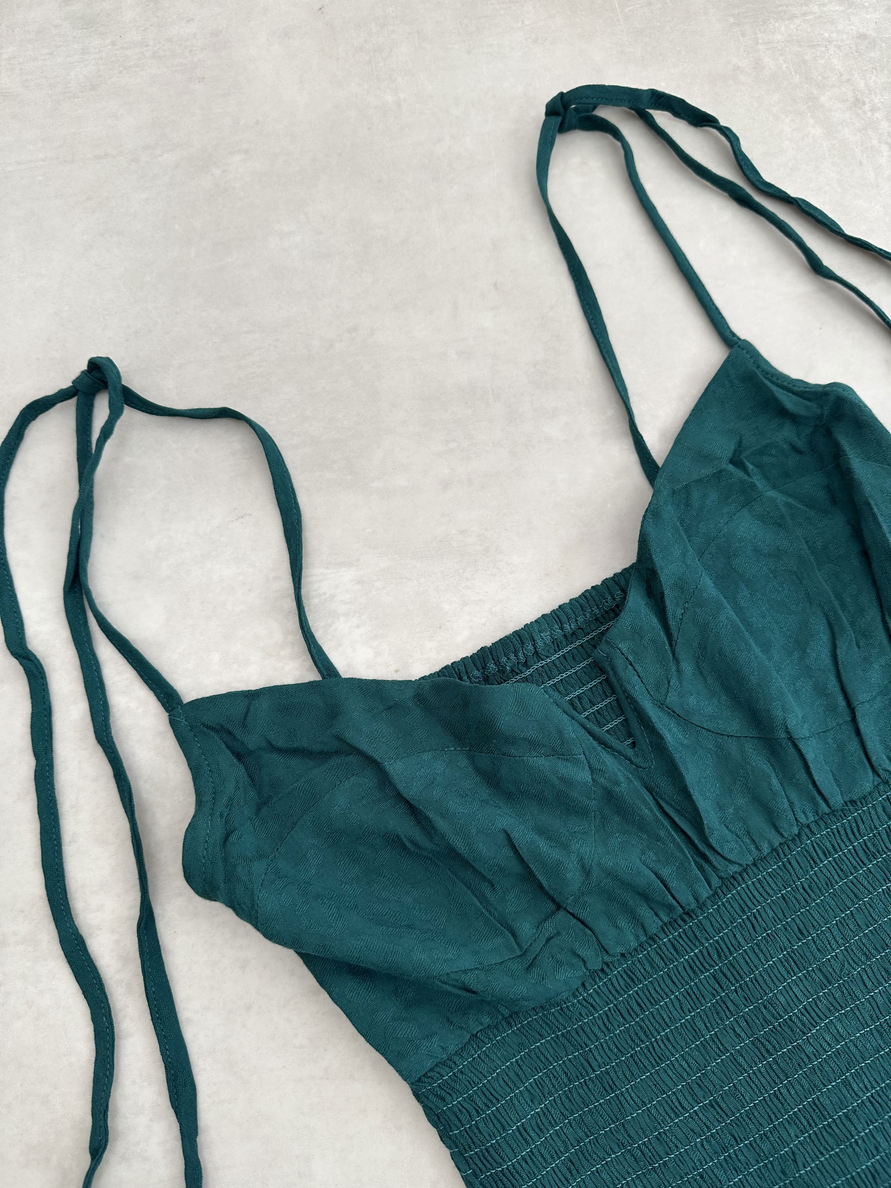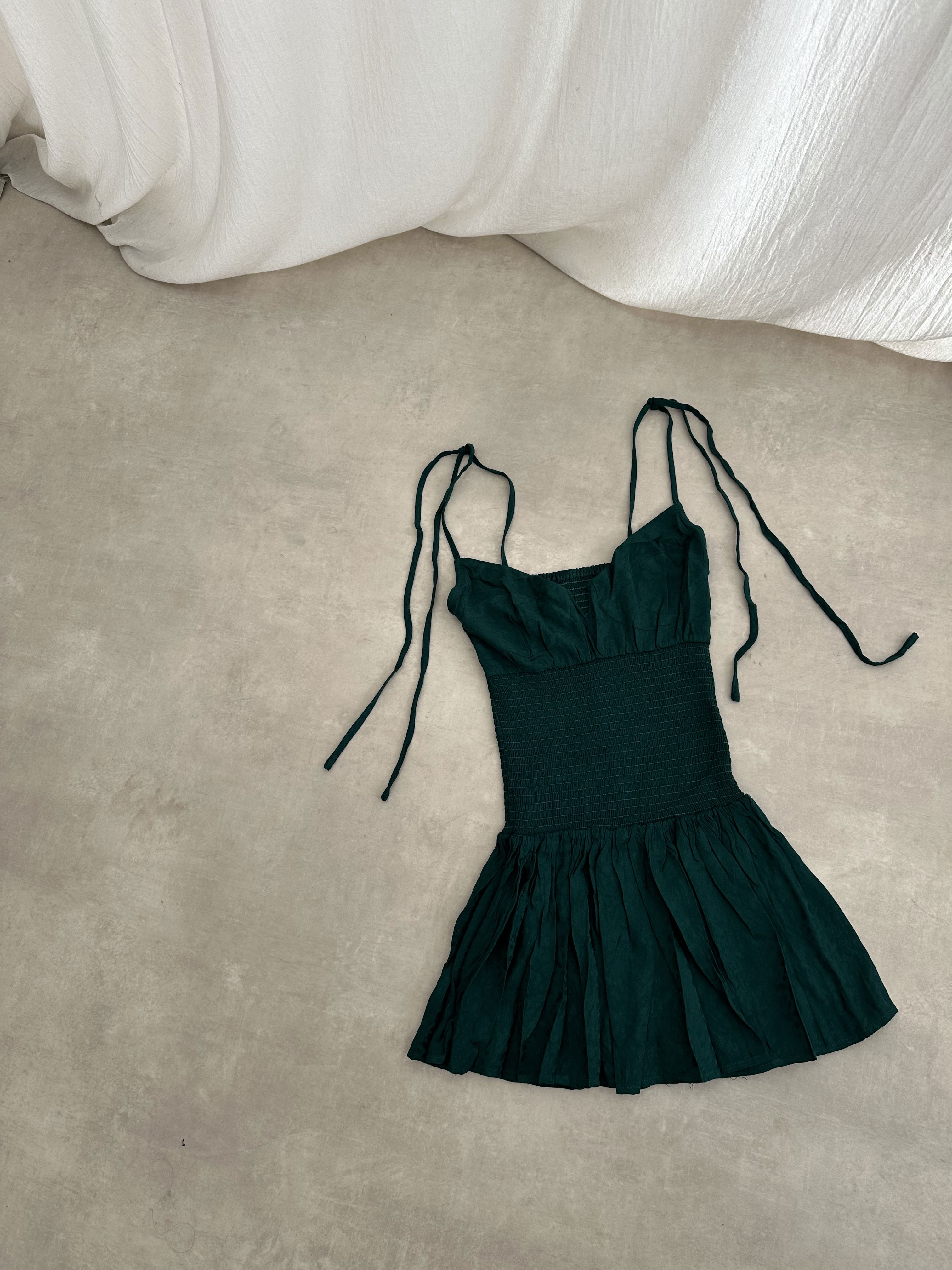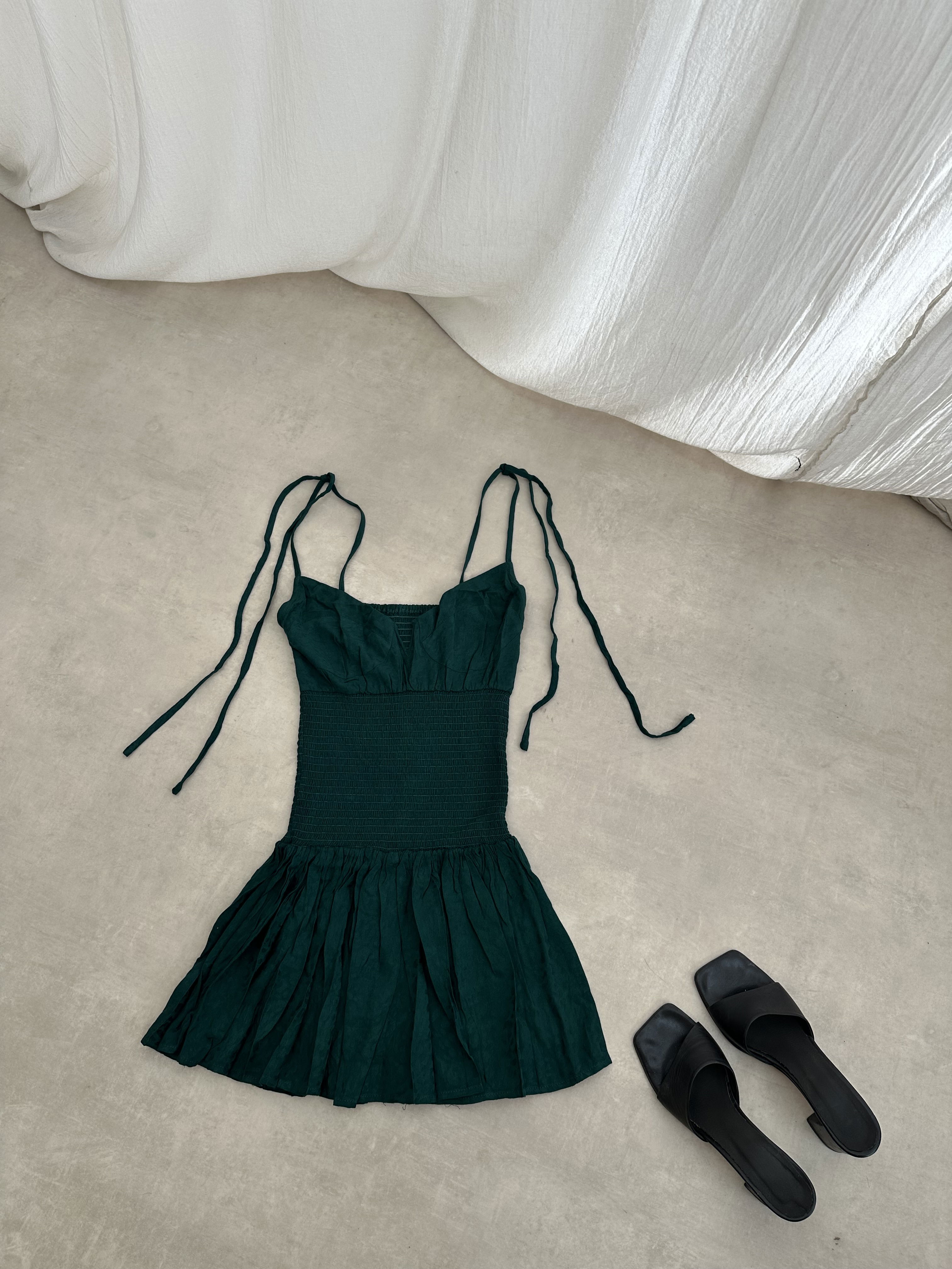 Vestido importado con detalle de penal de abeja en el centro, tiras regulables y una "V" rígida en la zona del busto para mejor calce .