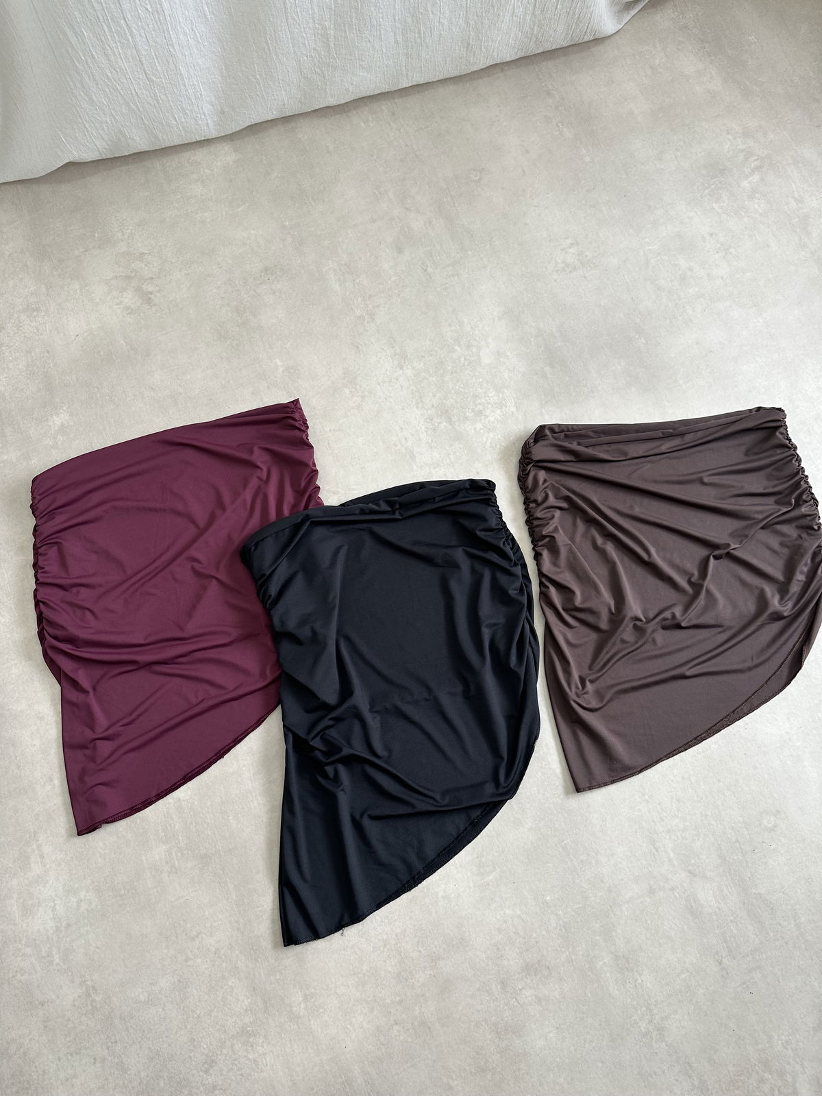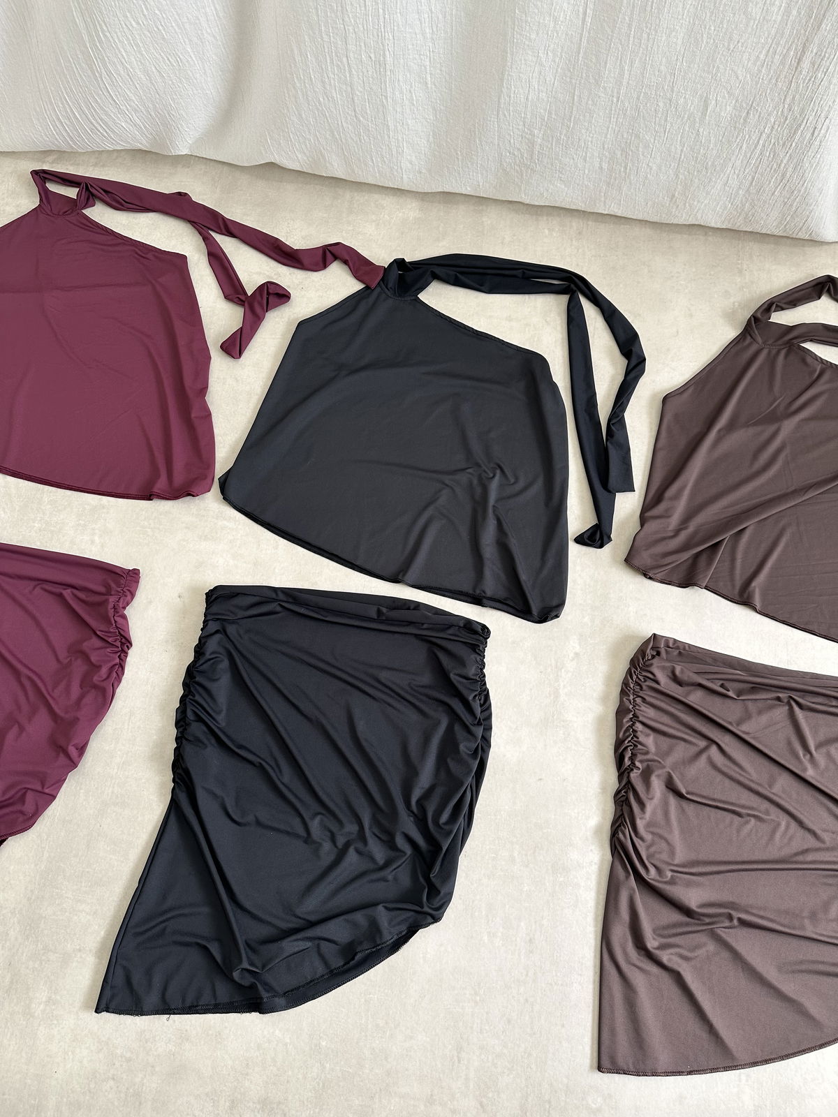 Mini de microfibra con terminación irregular, forro y detalle de frunce en los laterales. Podes combinarla con el top savage y hacer el set