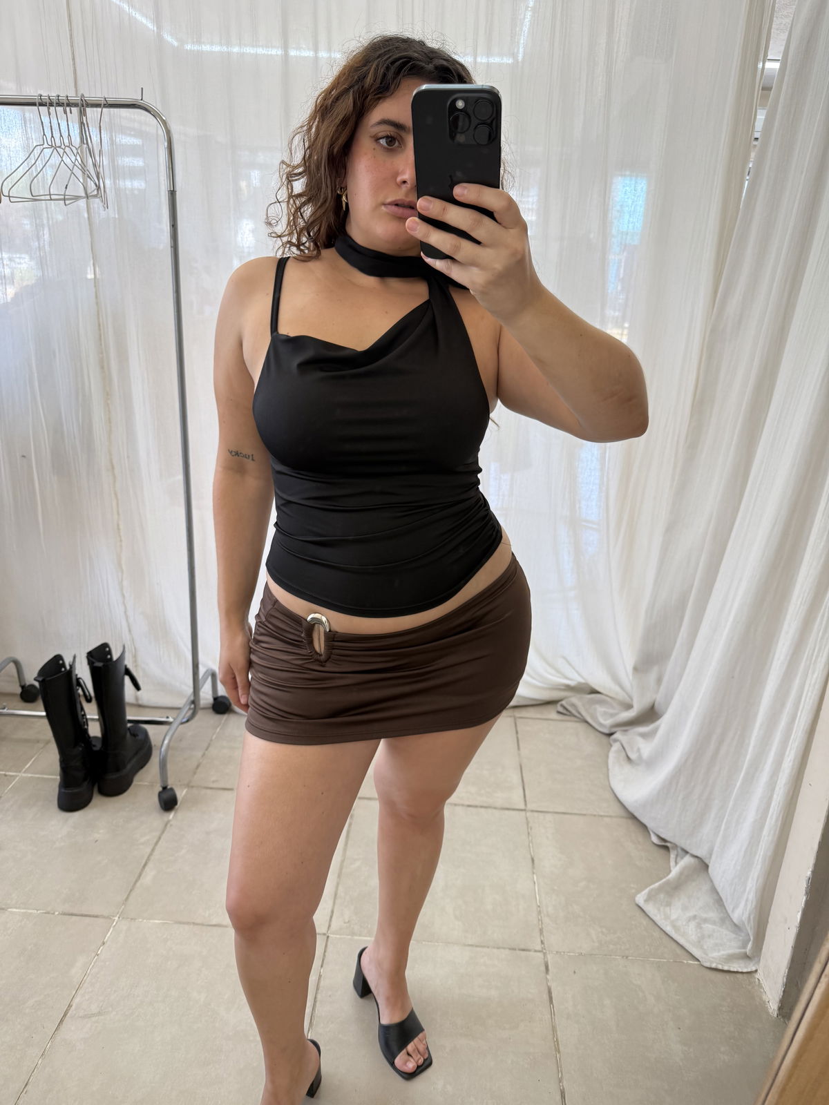 Top de microfibra con detalle de lazo en el cuello