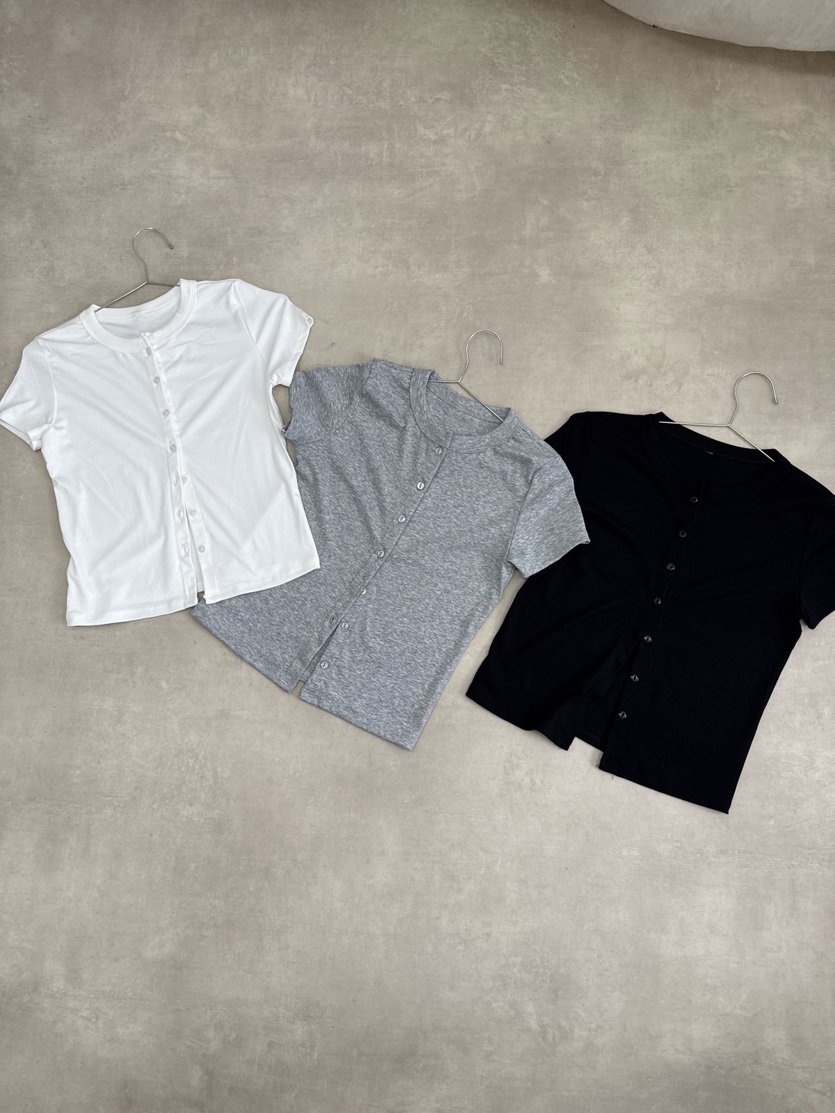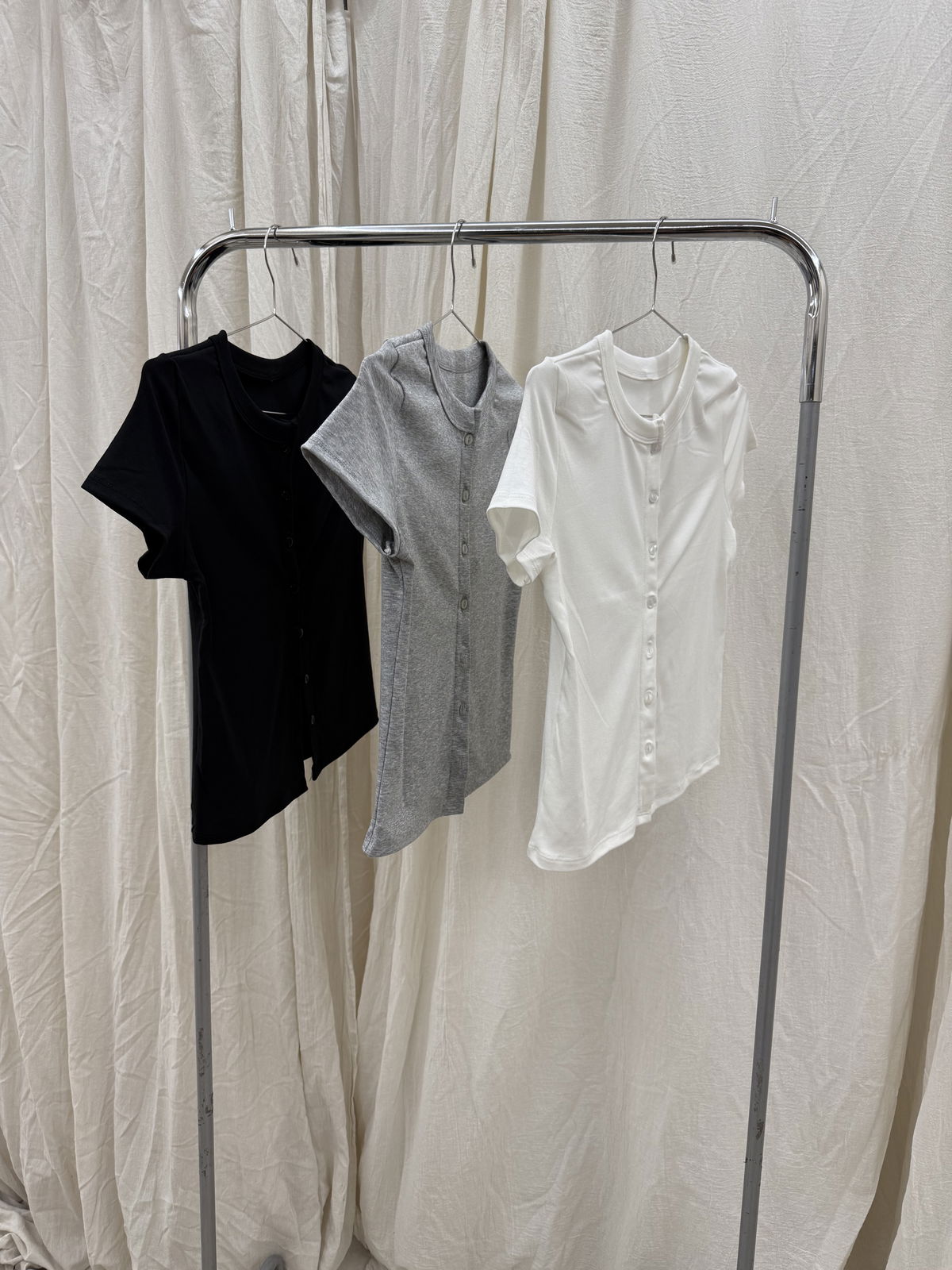 Remera manga corta con 7 botones en el frente.