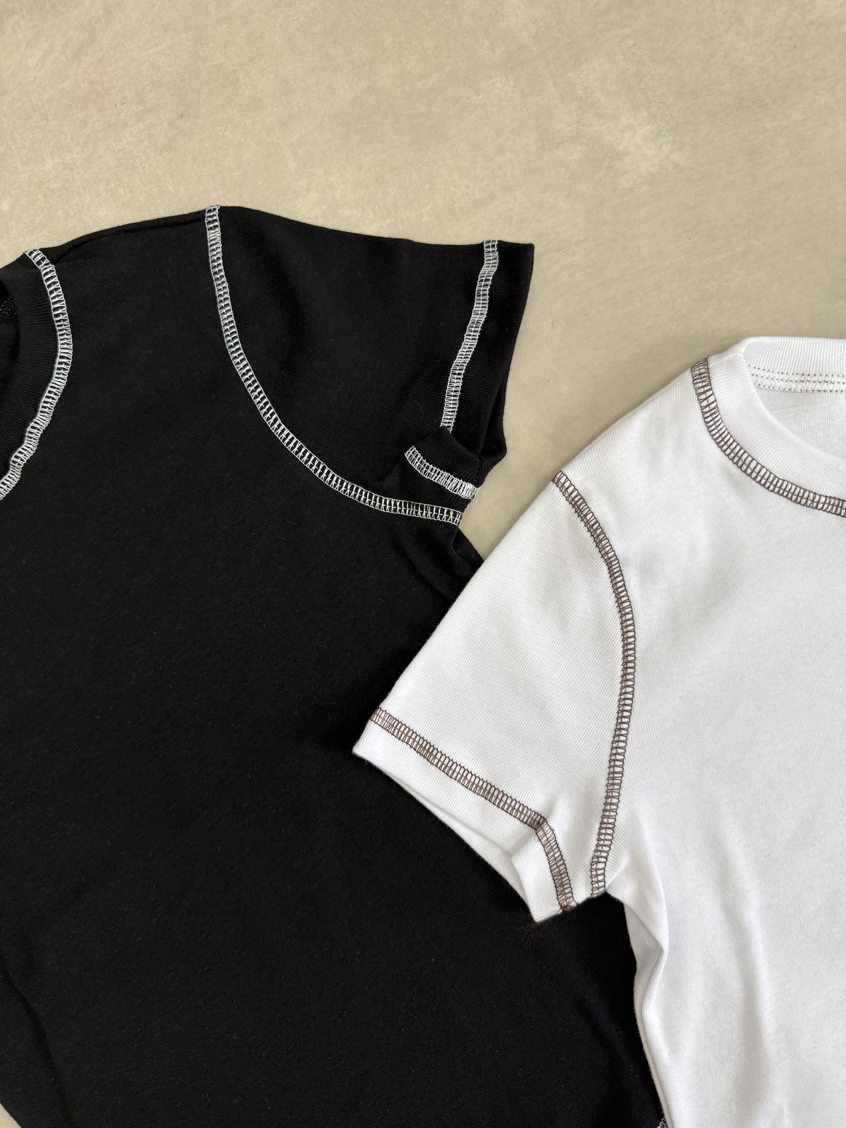 Remera básica de ribb con detalle de costuras en color.