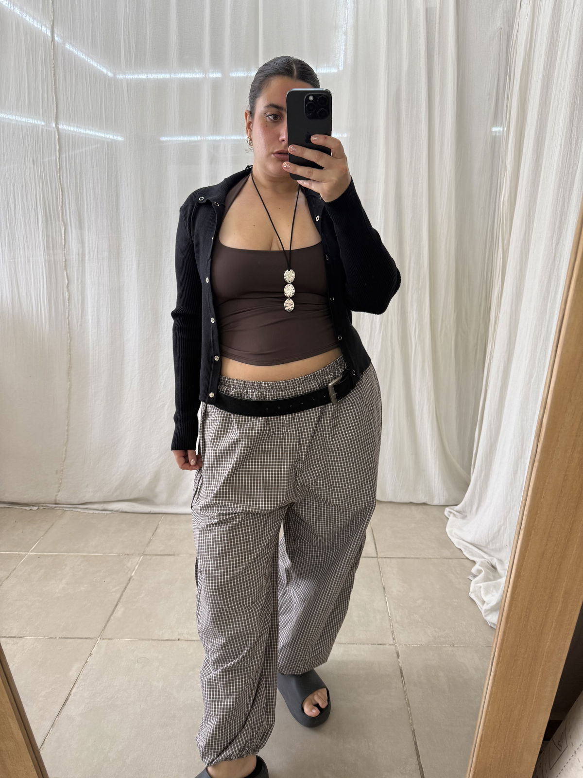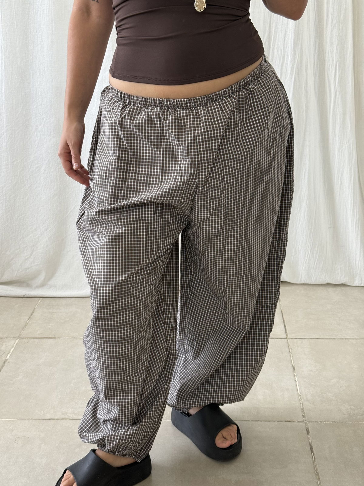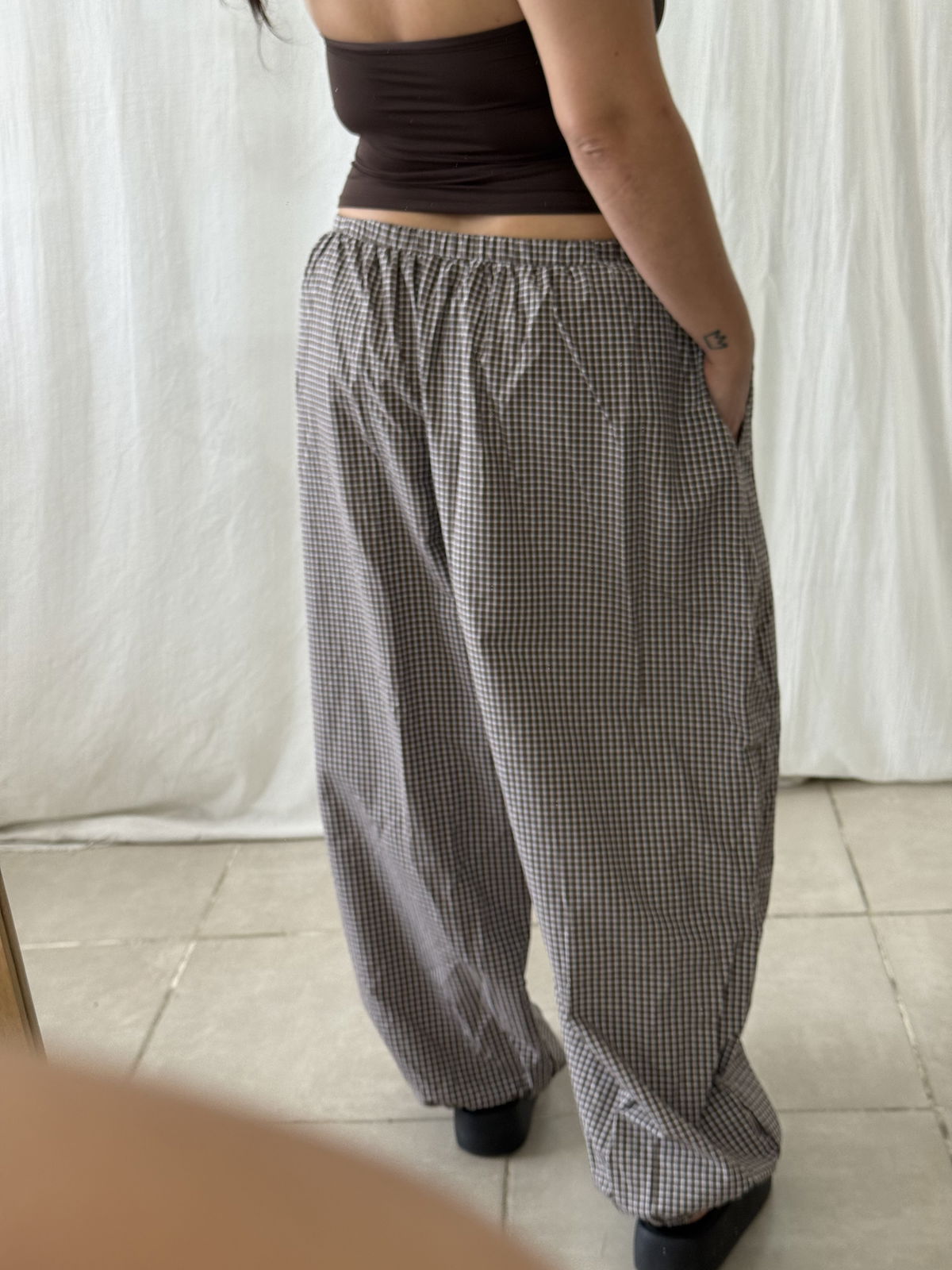 PANTALON BALLOON TARTAN CON BOLSILLOS EN EL FRENTE