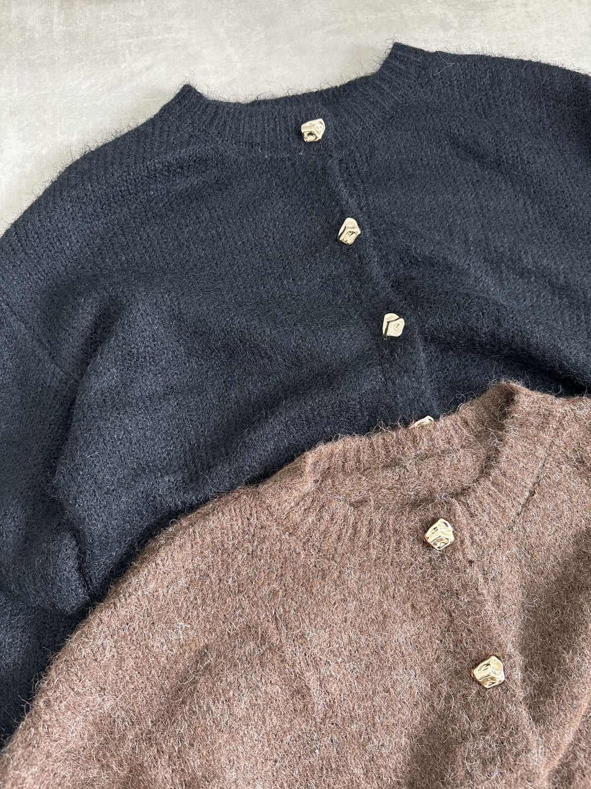 SACO IMPORTADO JASPEADO GRUESO CON BOTONES DE METAL.